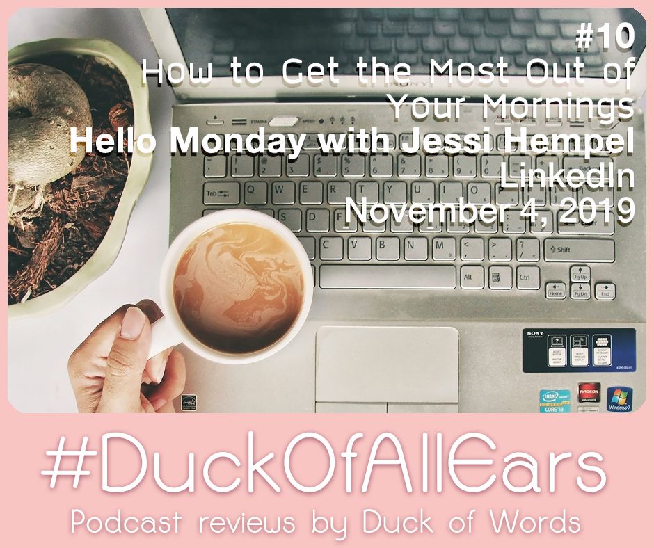 หายอีกแล้ว หายนานกว่าปกติ แต่จะไม่ไปนานจนทุกคนลืมแน่นอน #DuckOfAllEars กลับมาแล้วค่ะ พร้อมกับอีกรายการที่เป็ดติดตามมาสักพัก มีตอนที่ถูกใจบ้าง ไม่ถูกใจบ้าง แต่ได้ฟังตอนนี้ไปเมื่อวันจันทร์ที่ผ่านมา และตั้งใจจะเขียนรีวิวแนะนำเป็นพิเศษตั้งแต่ฟังจบแล้ว แต่ก็เพิ่งจะมีเวลา ก็หวังว่าจะยังไม่สายเกินไปสำหรับการแนะนำรายการ Hello Monday with Jessi Hempel (พ่วงยาวถึงชื่อพิธีกรกันสักหน่อย เพราะมีรายการอื่นที่ชื่อ Hello Monday อยู่เช่นกันค่ะ) ดำเนินรายการโดยพิธีกรสาวในชื่อพอดแคสต์เลย นั่นก็คือคุณเจสซี เฮมเพิล เน้นนำเสนอเรื่องราวของคนทำงานหลากหลายรูปแบบ ตั้งแต่ฟรีแลนซ์ยันเจ้าของธุรกิจแบบคุยกัน สบายๆ ให้คนฟังผ่อนคลายพร้อมกันได้รับสาระรับเช้าวันจันทร์ สำหรับวันนี้ที่ล่วงเลยมาถึงท้ายสัปดาห์วันทำงานกันแล้ว เป็ดก็ยังหวังว่าสิ่งที่นำมาฝากก็จะยังเป็นยาใจให้ไม่เฉพาะกับเหล่ามนุษย์เงินเดือน แต่ก็รวมไปถึงคนทุกเพศทุกวัยด้วยนะคะ