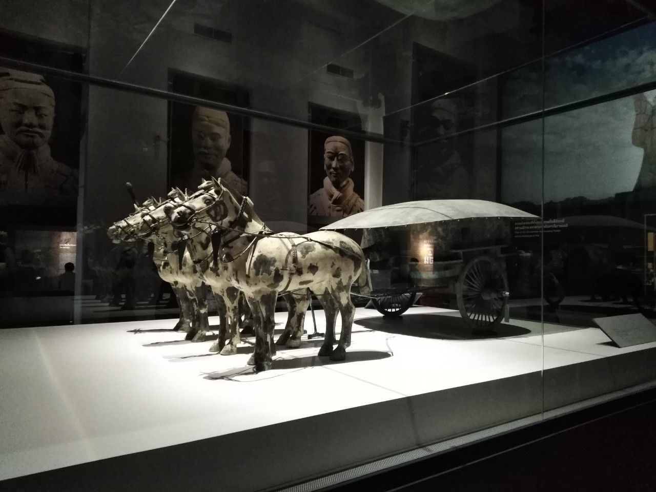 ถัดมาก็จะเป็นไฮไลต์ของงานค่ะ ส่วนจัดแสดงโบราณวัตถุจากสุสานของจิ๋นซีฮ่องเต้ ในบริเวณนี้จะมีรถม้าจำลอง และหุ่นทหารดินเผาของจริงจัดแสดงให้ได้ชมกัน