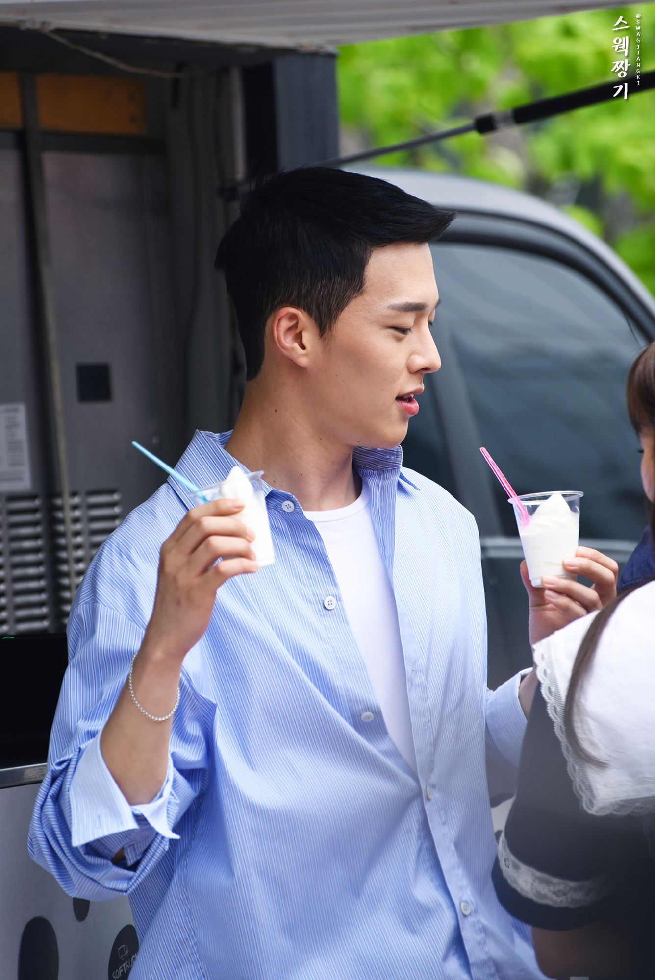 เมื่อนักแสดงมากันครบแล้ว สตาฟก็เข้ามาบลีฟ และก่อนเริ่มอีเวนต์จะมีการไลฟ์ผ่านทาง V App ก่อน แล้วก็ในอีเวนต์นี้จะมีทีมนักแสดงร่วมอีเวนต์ทั้งหมด 5 คน ค่ะ โดยนักแสดงทั้ง 5 คน จะคอยแจกกาแฟและไอศกรีมให้กับแฟนๆ ที่มาร่วมอีเวนต์ ซึ่งจะให้แฟนๆ ทะยอยเข้ามารับจากมือของนักแสดงทีละ 5 คน