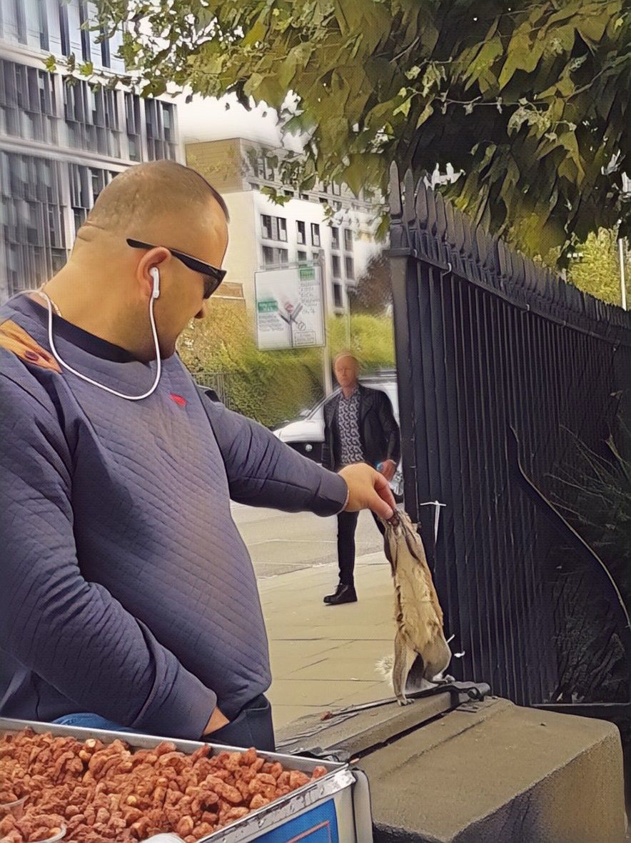 Under the dull sky, while other sellers sold their stuff with their boring faces (which was no doubt since they were standing for a long period of time), this man was smiling, and the reason of his smile was the squirrel who was nothing compared to the Tower of London.