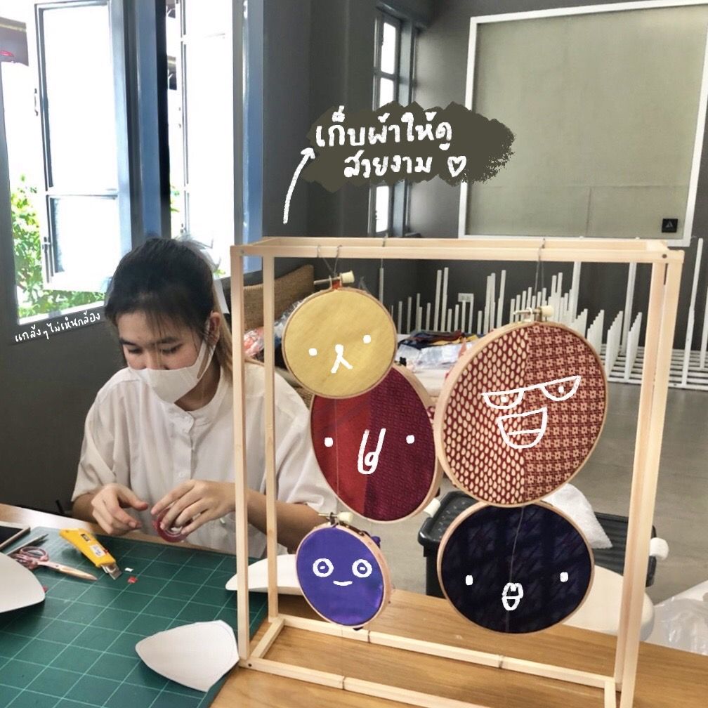 หลังกินอาหารกลางวันเพื่อเติมพลังกันแล้ว (ข้าวกลางวันเป็นหมูกรอบสุดแสนอร่อย) เราได้รับมอบหมายให้ให้จัดการเอาผ้าบางส่วนใส่สดึงเตรียมจัดแสดง ต่อจากนั้นเราก็ไปช่วยตัดด้ายสำหรับการจัดตกแต่ง เราทำหน้าที่ของตัวเองจนเสร็จ พี่ ๆ ก็มามอบงานใหม่ให้เราทันที ซึ่งดีมาก ๆ ในสถานการณ์ที่ทุกคนทำหน้าที่ของตัวเองอยู่ เราไม่ชอบปล่อยให้ตัวเองว่างเลยจริง ๆ โดยพี่ให้เราจัดการเก็บผ้าที่ห้อยระโยงระยางด้านหลังสดึงที่ใส่ไปก่อนหน้าให้เรียบร้อย เพราะพี่เขามองว่าปล่อยไว้เฉย ๆ มันดูไม่สวยงาม