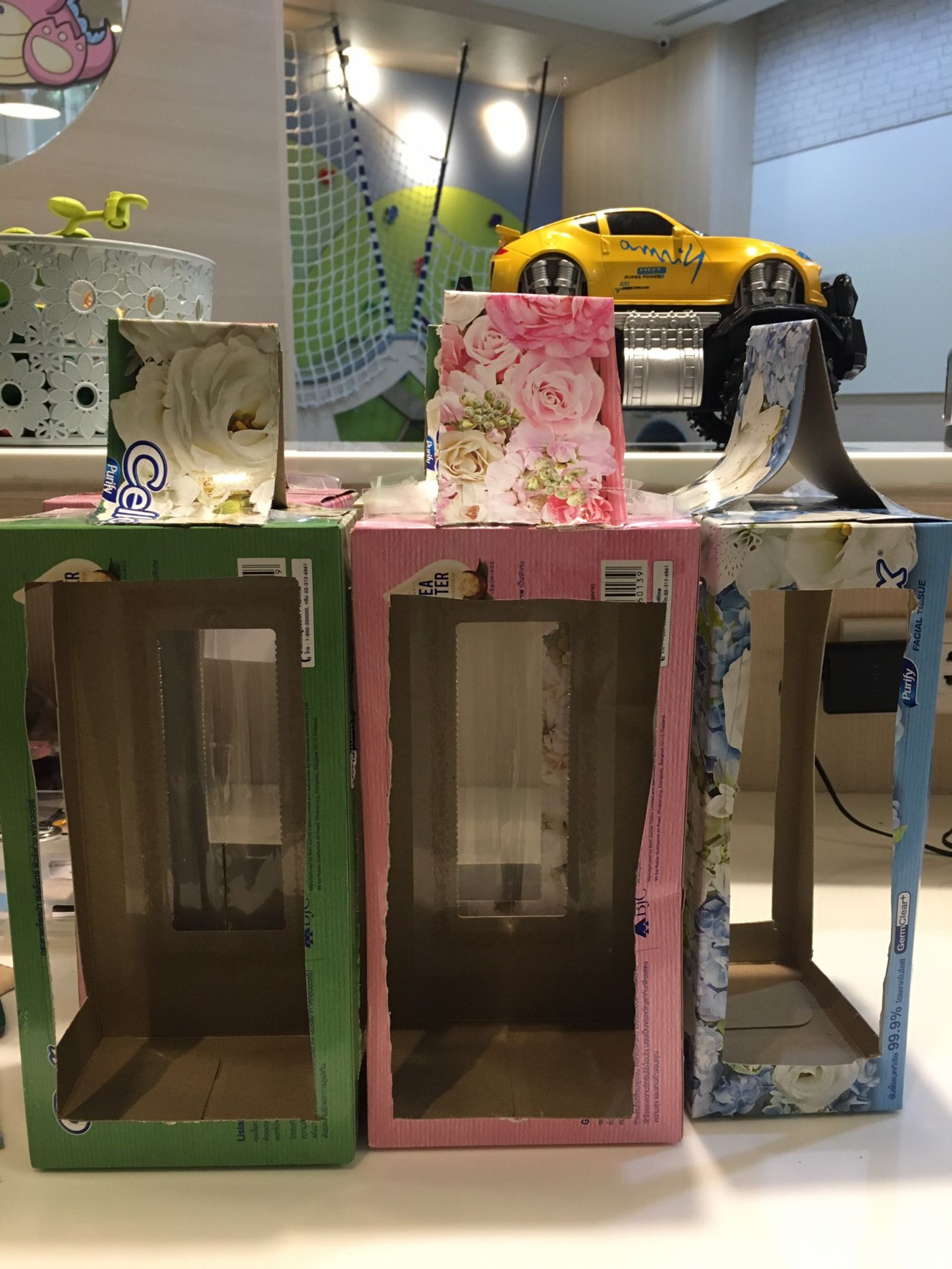 Birdcage : นำกล่องทิชชู่มาตัดเป็นช่อง ๆ ตามรูปเลยจ้า