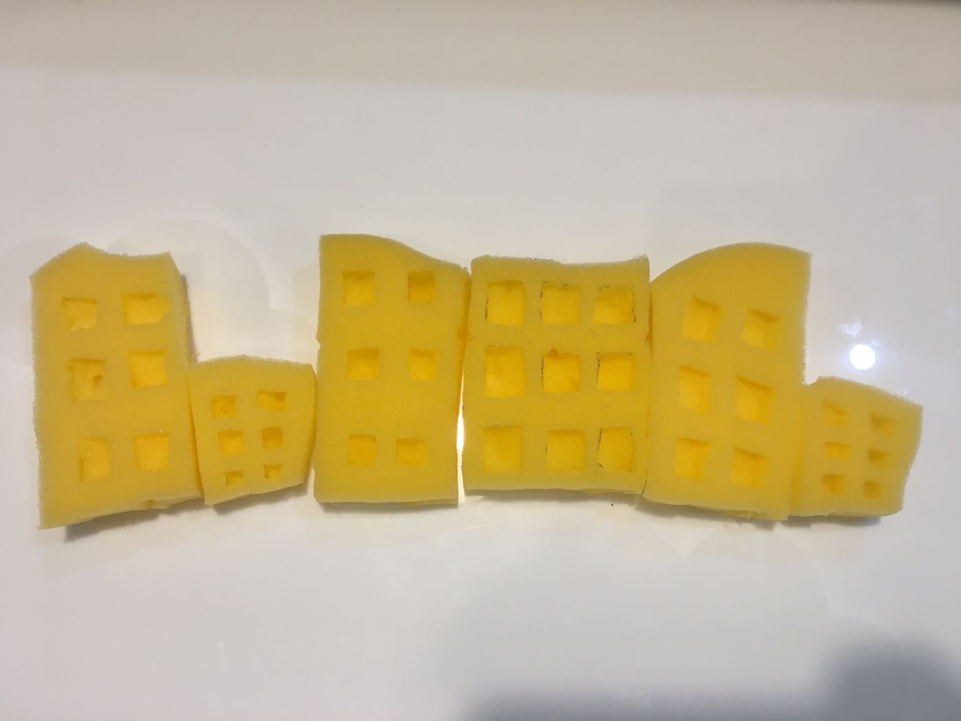 โดยฉันมีหน้าที่มานั่งตัดฟองน้ำให้เป็นรูปทรงตึก ตัดเป็นช่องหน้าต่าง