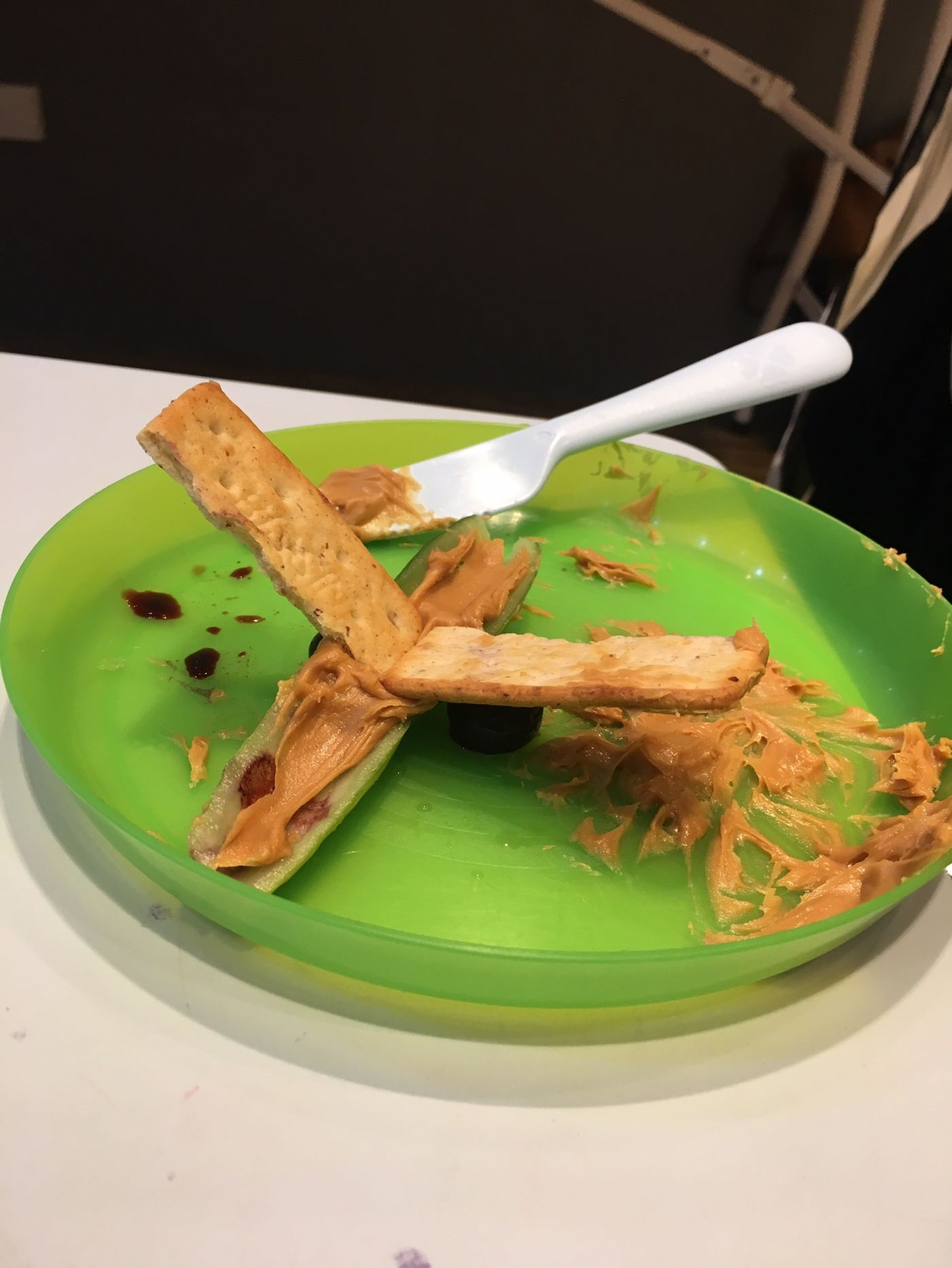 Cook ! Make an Airplane : โดยการควานเนื้อแตงกวาออก และใช้เนยถั่วปาดเข้าไปแทนที่ นำแครกเกอร์มาติดปีก และนำผลบลูเบอร์รี่มาติดเป็นล้อ