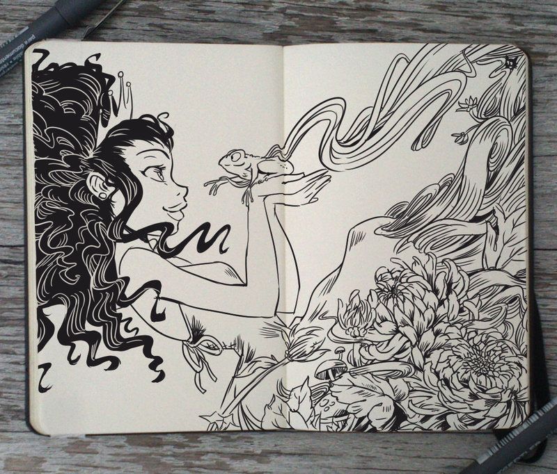 เค้าตั้งชาแลนจ์ "365 day of doodle" เพื่อให้ได้วาดภาพทุกๆ วัน Doodle ของเค้าแต่ละภาพคือวาดเล่นแบบไม่ใช่เล่นๆ เลย มีรายละเอียดเยอะสวยงามมาก วาดแบบใช้ที่สมุดสเก็ต 2 หน้ากระดาษเลยทีเดียว คือไม่ใช่แค่วาดเขี่ยๆ เล่นๆ แต่วาดเล่นๆ แบบจริงจังภาพวาดดูเสร็จสมบูรณ์