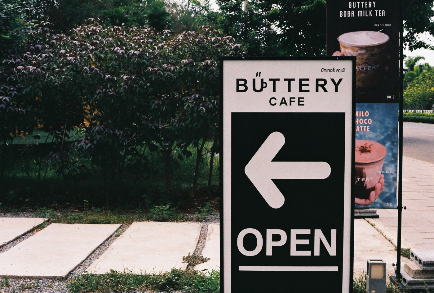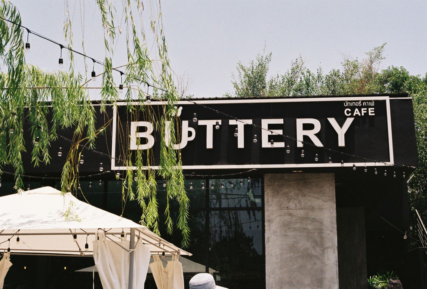 Buttery Cafe อยู่เลียบคลองทวีวัฒนา ไม่ไกลจาก ม.มหิดล ศาลายา มีที่จอดรถริมถนน ร้านตกแต่งสไตล์ลอฟต์โทนเทาดำน้ำตาล ตัวร้านเป็นกระจกใสมีแสงเข้ารำไร คนในร้านก็เยอะกำลังดี ไม่ว่างจนผีหลอก แล้วก็ไม่เยอะจนแออัด