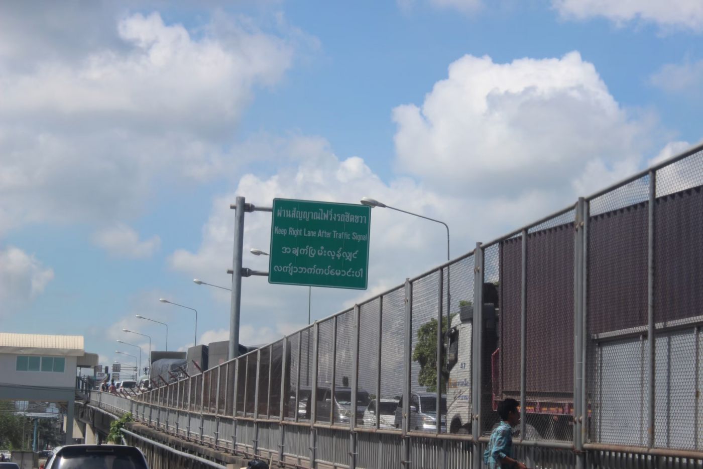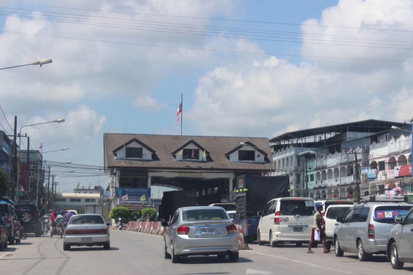 ด้านขวามือจะเห็นได้เลยว่ามีรถหลายคันมากที่ต่อคิวเพื่อข้ามแดนไปยังพม่า