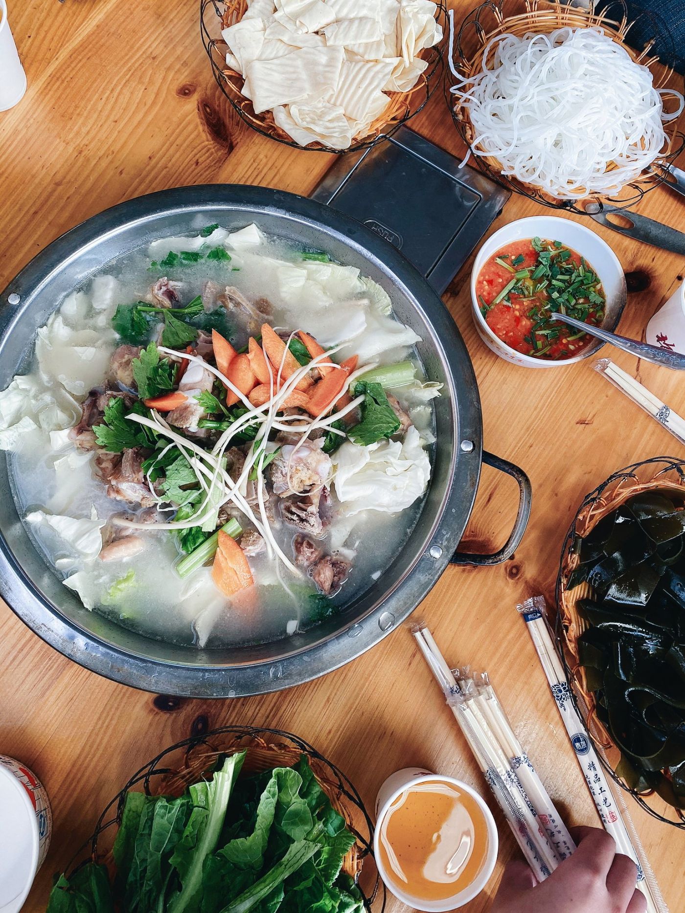 หลังจากเที่ยวตรงนี้เสร็จพี่คนขับนัดกินข้าวเที่ยงกันที่ Blackwater Mountain Village (ค่าข้าวรวมไปตอนที่เราซื้อทัวร์แล้วจ้า) อากาศเย็ยขนาดนี้จะไม่มีหม้อไฟได้ยังไงกัน อันนี้เป็นเหมือนต้มกระดูกหมู แล้วก็เติมพวกผักสด เส้น เต้าหูลงไป น้ำซุปอร่อย นัวมากกก