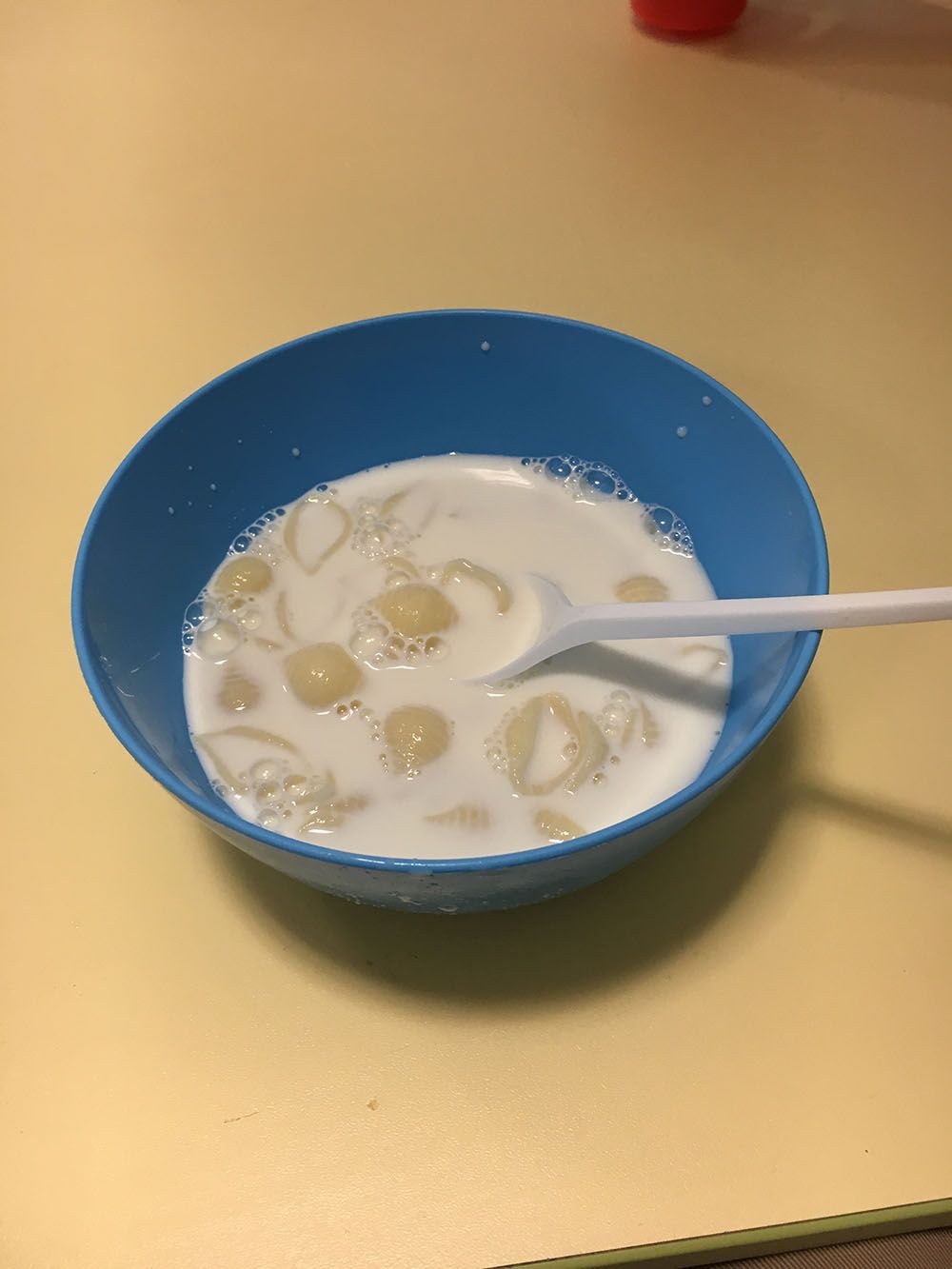 สรุปมันคือพาสต้าที่เราต้องกินกับนมหน้าตาของมันดูซิมเปิ้ลๆ ดูไม่มีพิษไม่มีภัยอะไร แต่รสชาตินี่สิ โอโห....แม่คุณใครเค้าสั่งเค้าสอนให้กินพาสต้ากับนมเนี่ย มันไม่ได้มีความเข้ากันเลยนะโว้ย และมื้อแรกที่นี่ของผมก็เป็นประการนี้แหละกินไปน้ำตาไหลพรากๆ ขอบคุณ ชีวิตนี้รู้เลยว่ากูต้องกินเพื่ออยู่