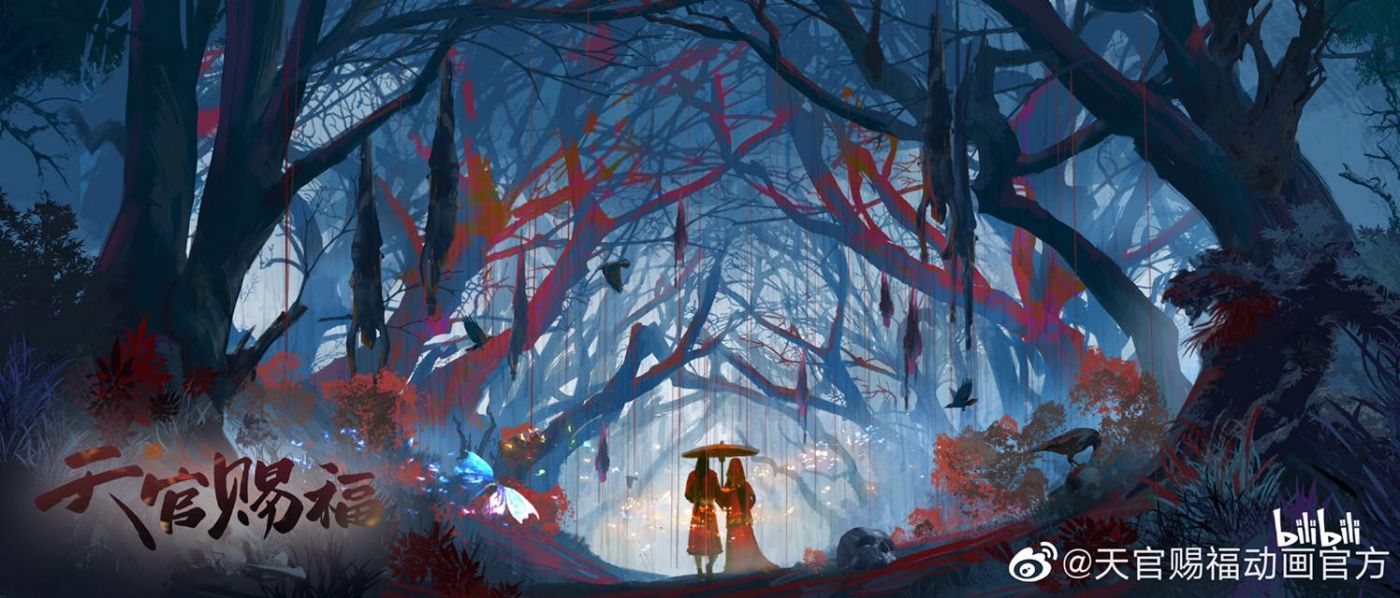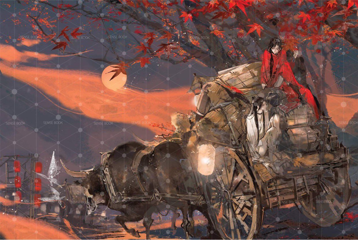ตัดมาฉากพระเอกออก คิดว่าทุกคนน่าจะคุ้นเคยกับภาพที่หนุ่มชุดแดงจูงมือเซี่ยเหลียนกางร่มกันฝนเลือด ขอเอาภาพปกจากประเทศอื่นมาประกอบการหวีด ส่วนตัวชอบฉากนี้มาก ใจละลายตั้งแต่ภาพอาร์ตจนดูอนิเมะ พออ่านนิยายลงรายละเอียดยิ่งรู้สึกว่า สวยจังเลยยย ต้องบอกเลยว่าจุดนี้อนิเมะเล่าตัดฉากไว้ดีมากกกกกก ส่วนนิยายเราจะถูกปูเรื่องราวบางอย่างไว้ตั้งแต่เกริ่น ถ้าไม่ดูอนิเมะหรือโดนสปอยล์ใด ๆ มาก่อนก็คงจะต้อง เอะอ๋อ เอาเองเลยค่ะว่า คนที่น่าจะเป็นพระเอกคนนี้คือใครน้า (แต่อ่านเรื่องย่อข้างหลังคงเดาได้กันหมดละนะคะ) ต้องบอกว่านี้คือข้อได้เปรียบของการเล่าด้วยภาพค่ะ // ยกนิ้ว
