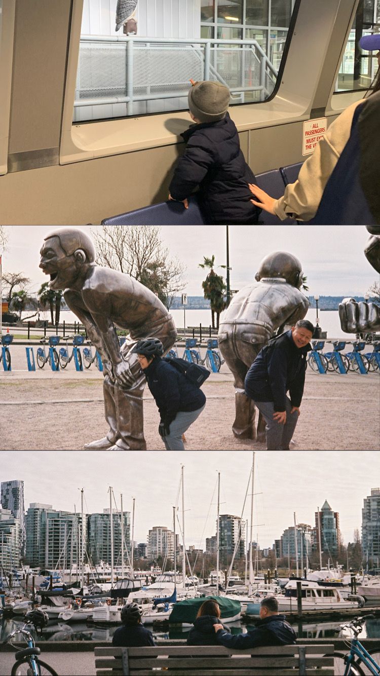 เริ่มต้นวันด้วยการพาทุกคนไป Quay Side Plaza Market เป็นตลาดเล็ก ๆ ที่อาจมีของไม่เท่า Granville Island แต่ก็เดินเล่นชมบรรยากาศได้ เป็นที่แรกที่เจ๊กับป๊าซื้อ Lotto ด้วย สองคนนี้อยากเล่นมาก ขูดได้รางวัลด้วยนะ แต่ก็นะก็เสียมากกว่าได้ สิ่งที่ได้จริง ๆ คือความสนุก แล้วบีมก็ให้ทุกคนได้ลองลูกอมของแคนาดาที่ Teacher บีมเคยบอกว่าคนแคนาดาชอบ พอทุกคนลองกลับกลายเป็นว่าไม่ได้แย่แบบที่คิด แต่ก็ไม่ได้ดี และไม่ขอกินอีก 55555 ถือว่า once in a lifetime แล้วบีมก็พาทุกคนนั่งเรือข้ามเข้าไปใน downtown เจอน้องคนนึงน่ารักมาก แม่คือจะเล่นกับน้องอย่างเดียวเลย 55555 พอไปถึงก็พาไปร้าน Sushi Den เป็นร้านซูชิที่บีมไปฝากท้องบ่อยมาก เพราะถูก แต่เจ๊ชอบราเมง โถ่ ร้านเสียใจแล้วนะ แล้วแพลนต่อไปคือการไปเดินปละปั่นจักรยานเล่นที่ Standley Park วันนี้อากาศอึมครึม ไม่ได้แดดออกเท่าที่คาดหวังแต่ก็ถือว่าโอเคนะ นั่งไปหาที่เช่าจักรยานเพราะวลีว่า "บ้านเราปั่นจักรยานเก่งกันทุกคน" แม่กล่าวไว้ เริ่มด้วยการที่เจ๊อยากปั่นไปทาง English Bay บีมก็เลยลองถามพนักงานที่ร้านว่าไปยังไงนะ เค้าบอกว่าให้ตัดถนนเส้นนี้ไปปั่นไปได้เลย ตอนปั่นคืองงเรื่องทางมาก และด้วยความแวนมันเป็นภูมิประเทศแบบภูเขาหน่อย ๆ ก็เลยเหมือนปั่นขึ้นเนินแล้วก็ไม่แน่ใจเรื่องเลนจักรยาน ทุลักทุเลกันมากกว่าจะถึง English Bay พอไปถึงสิ่งแรกที่ทำก็คงไม่พลาดถ่ายรูปกับรูปปั้นรูปคนและครอบครัวเราก็ไม่พลาดที่จะหาไส้กรอกกินที่เค้าจอดขายอยู่ริมทาง ป๊าชอบมาก อะไรที่ดู local นิดนึง แล้วก็ปั่นย้อนไปทางที่จะวนไป Stanley park แต่กลับกลายเป็นว่ามันเป็น one way ต้องปั่นกลับทางเดิม แล้วก็ไปปั่นเล่นแถวนั้นอีกนิดหน่อย แล้วแม่ก็ทำการวัดพื้นแถวนั้นสักหน่อยว่านุ่มไหม นี่ครบคอนเท้นทั้งบ้านแล้ว จากคำว่าบ้านเราปั่นจักรยานเก่งทุกคน สุดท้ายคือบ้านเราปั่นจักรยานล้มทุกคน 55555 เป็นโมเม้นที่ตลก กลัวเจ็บ และแฮปปี้สุด ๆ ไปนั่งเล่นกันสักพักก็เอาจักรยานไปคืนแล้วบีมแวะไปเอาของกับพี่ที่บ้านแถว ๆ Yale town เลยให้ทุกคนนั่งกินขนมเล่นที่ breka กลับบ้านไปกินปลาร้าสับที่ให้แม่เอามา ป๊าคือคิดถึงอาหารไทยแล้ว วันที่ 3 เองนะ บีมเลยบอกว่าอย่ากินหมดนะ บีมหวง 555555