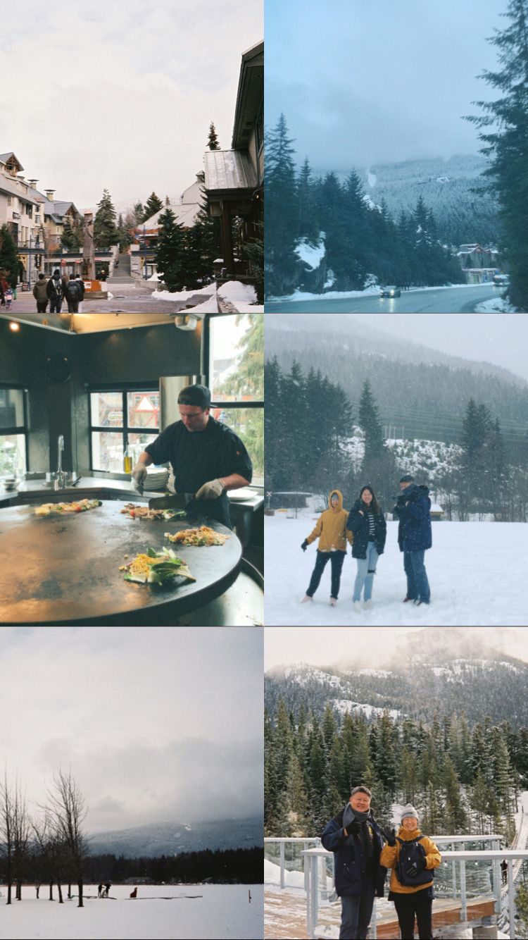 หลังจากสนุกสนานกันมากพอแล้วก็ได้เวลาเดินทางไปต่อที่จุดหมายเราจริง ๆ คือ Whistler Village ระหว่างทางไป Whistler สวยมากจริง ๆ นะ เอาจริงแคนาดาเป็นสถานที่โรแมนติกเหมือนกันนะ ระหว่างทางไป whistler เหมือนค่อย ๆ ไล่จากความเขียวไปจนถึงความขาวของหิมะที่ปกคลุมอยู่ สุดท้ายเราก็ถึงเป้าหมายของเราจริง ๆ ที่นี่มีป้ายกีฬาโอลิมปิกอยู่ รอบหมู่บ้านรายล้อมไปด้วยเขาที่ปกคลุมด้วยหิมะ และเป็นหมูบ้านที่ให้ความรู้สึกเป็นแหล่งช้อปปิ้งและร้านอาหาร ด้วยความหิว (ทำไมทริปนี้มีแค่ของกิน เพราะพวกเราเป็นครอบครัวตัวกลม 55555) Random ร้านอาหารเหมือนเล่นกาชาปองไปจบที่ร้านมองโกเลียร้านนึงเค้าจะให้จานเรามาเลือกวัตถุดิบและซอสแล้วเค้าจะมีเชฟผัดให้ คิดราคาตามน้ำหนัก หลังจากนั้นเจ๊ก็มีไอเดียว่ามี Lake ใกล้ ๆ นะ ไปดูพระอาทิตย์ตกกัน จากนั้ก็ค่อย ๆ ตามหา lake นั้น สุดท้ายจบที่ Lake เป็นหิมะทั้งหมด 5555 แต่ก็สวยไปอีกแบบนะ แล้วพวกเราก็กลับไปกิน Tim Hortons ก่อนเดินทางกลับบ้าน
