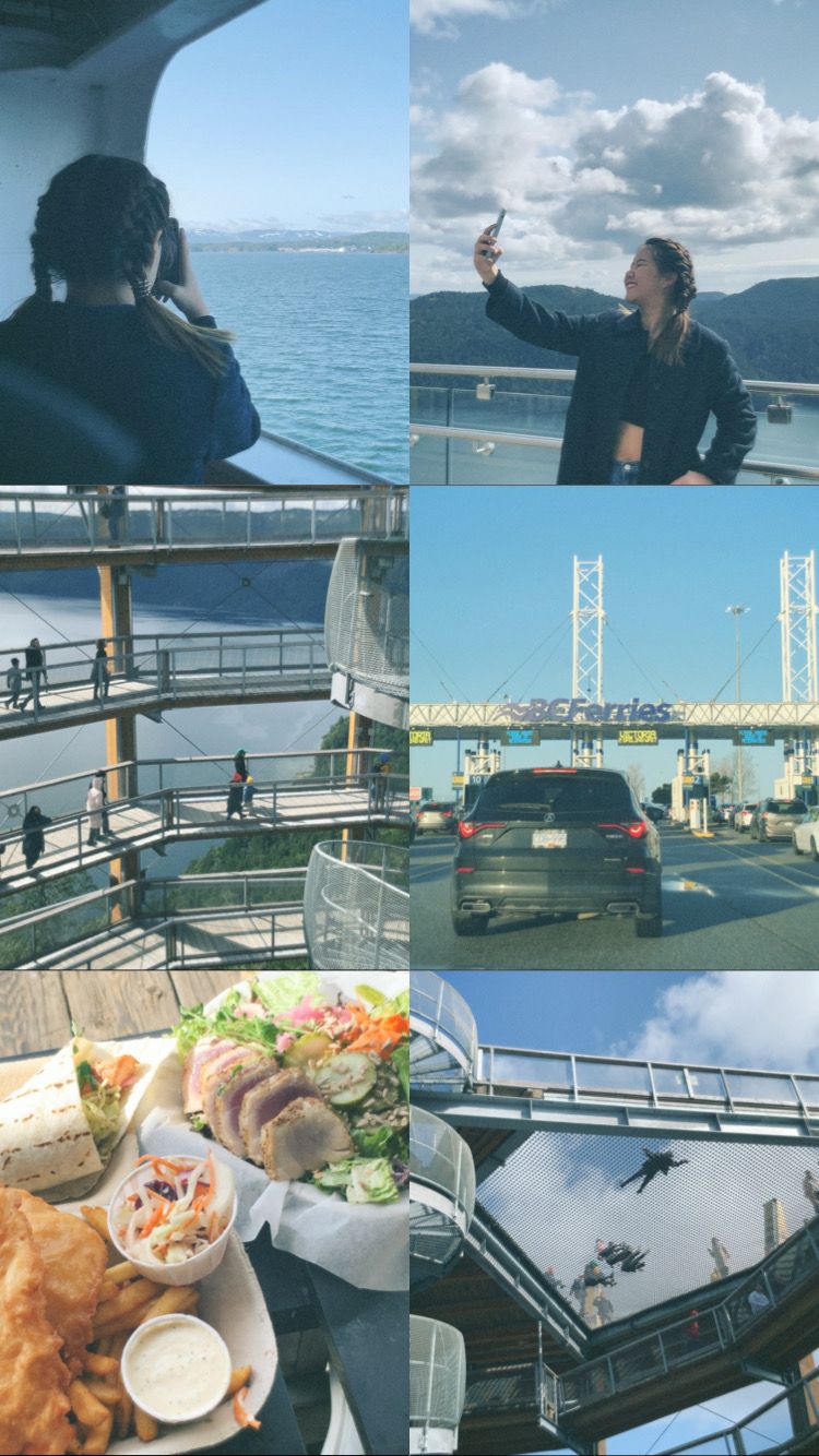 ในที่สุดก็ถึง Victoria บีมเลยพาทุกคนไปที่ Malahat เป็นสถานที่ที่บีมอยากไปกับแซมครั้งที่แล้วแต่พวกเราไม่มีรถ วันนี้อากาศดี มีแดดแต่ไม่ร้อน เราต้องเดินเข้าไปซักพักเลยกว่าจะถึงจุดชมวิวที่ต้องเดินขึ้นวนไปเป็นวงกลมเรื่อย ๆ เหมือนไร้รอยต่อแล้วเราจะถึงจุดที่สูงที่สุด บีมเป็นคนที่กลัวที่สุดไม่รู้ทำไม ตอนแรกคิดว่าป๊ากับเจ๊น่าจะกลัว แต่บีมคือกลัวมาก คือเดินไปบ่นไปว่ามันน่ากลัว แต่วิวคือสวยม๊ากกก แบบทั้งสดชื่น มีทั้งน้ำ ป่า และท้องฟ้า ข้างบนจะมีตาข่ายที่เราเดินเล่นได้เพื่อเพิ่มความหวาดเสียวบีมเดินไปได้รอบเดียวแค่เอาชนะใจตัวเอง พอละ กลัวว สุดท้ายเจ๊กับแม่ไปต่อคิวแล้วสไลด์ลงมาด้วย แต่บีมไม่ไหวจริง ๆ เดินลงกับป๊าก่อนมารอข้างล่าง