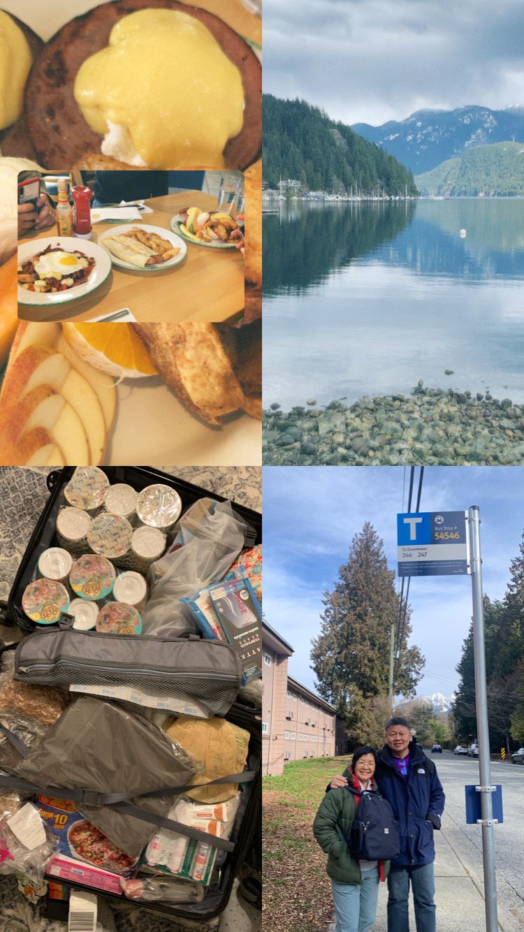 หลังจากออกมาจากสนามบินได้แล้วบีมก็เรียก lyft ไปที่พัก แผนบีมคือกลับไปให้ทุกคนอาบน้ำแล้วออกเลย เพราะกลัวทุกคนจะ Jet Lag พอถึงบ้านพักก็จัดการให้ทุกคนเก็บของอาบน้ำใช้เวลาสักพักแล้วก็พอทุกคนออกไปกิน breakfast ที่เกือบจะเที่ยงแล้วที่ Cora และทุกคนจะได้รู้จักคำว่าอย่าประมาทจานอาหารแคนาดา เพราะบีมก็ยังตกใจที่อยู่ที่นี่สักพักแล้วเรากินอาหารหมดจาน หลังจากจัดการอาหารเสร็ตแล้วก็เดินทางต่อไปที่ deep cove ให้ทุกคนได้สัมผัสกับอากาศไร้ PM ได้อย่างเต็มปอด เดินไปถ่ายรูปไป แล้วบีมก็ชวนเจ๊ไปเล่นสไลเดอร์เด็ก ตอนแรกก็คิดว่าไม่สูงนะ แต่พอปีนไปเรื่อย ๆ ก็คือไม่ไหว ๆ ขาสั่น แล้วก็สไลด์ลงมาในที่สุด หลังจากที่ทุกคนได้ัสัมผัสอากาศหนาวแล้วก็พบว่าเสื้อไม่น่าไหวเลยตรงไปที่หาซื้อเสื้อให้ป๊าที่ร้าน Value Village เป้าหมายของพวกเราคือ ของดีราคาถูก เพราะว่าป๊าคงไม่ได้ใช้เสื้อแบบนี้ที่ไทย สุดท้ายหาไปหามาก็ได้เสื้อ North Face คุณภาพดีที่ดูใหม่มากมาในราคาไม่ถึง $70