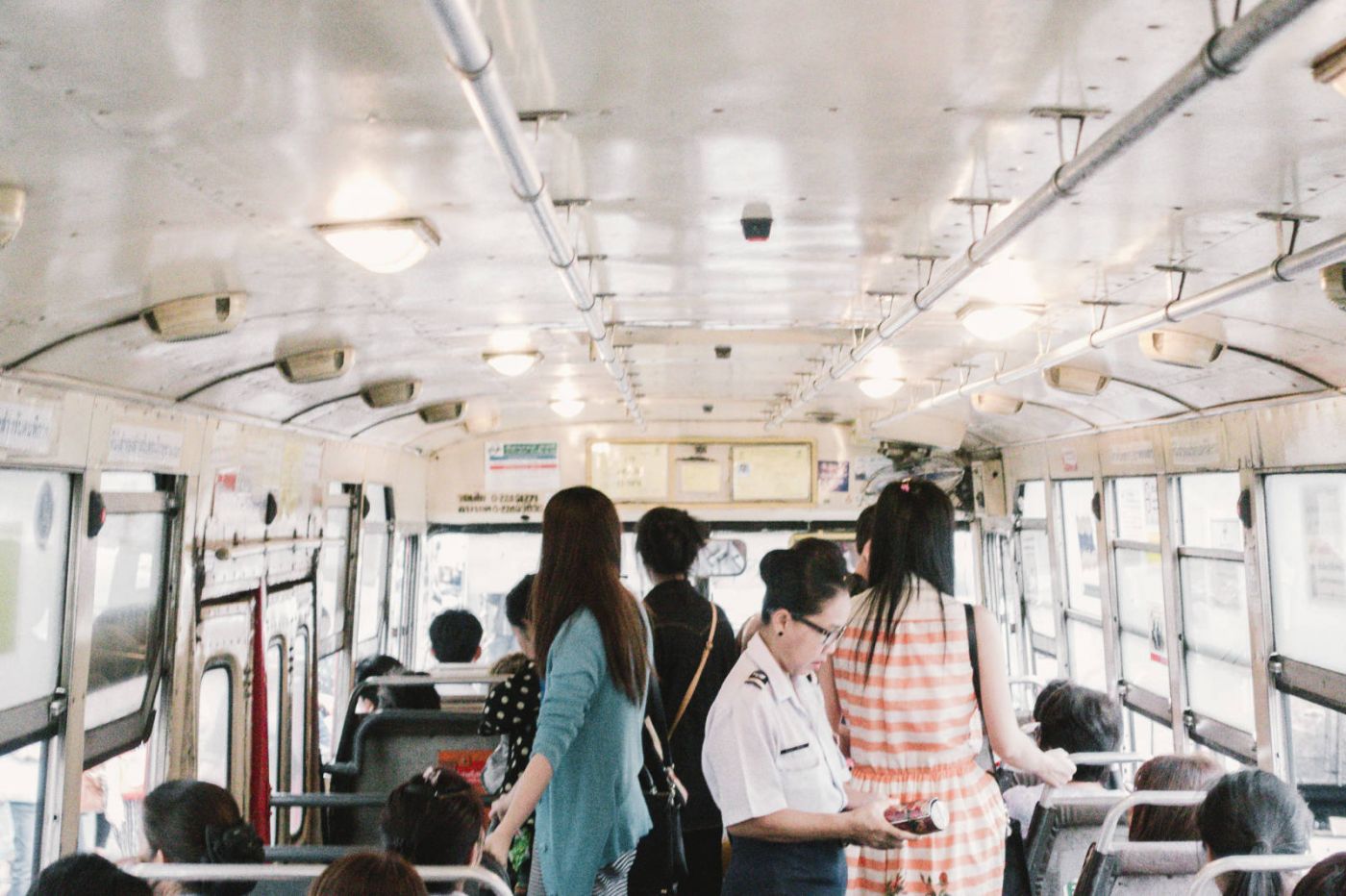 คุณต้องรู้จักอดกลั้น เพราะรถเมล์สายที่เรารอมักนานเสมอ แถมบางทีก็มีพวกมารผจญอย่างแท็กซี่ผ่านมาทดสอบจิตใจเป็นระยะ ต้องเป็นคนที่หนักแน่นเท่านั้นถึงจะขึ้นไปอยู่บนรถเมล์ไทยได้ ซึ่งใช่ว่าขึ้นไปแล้วเรื่องจะจบ เรายังต้องฝึกความอดทนด้วยการเจออากาศอบอ้าวและการเบียดเสียดข้างบนรถอีก แต่ผมไม่โกรธเลย ผมทึ่งมากกว่า