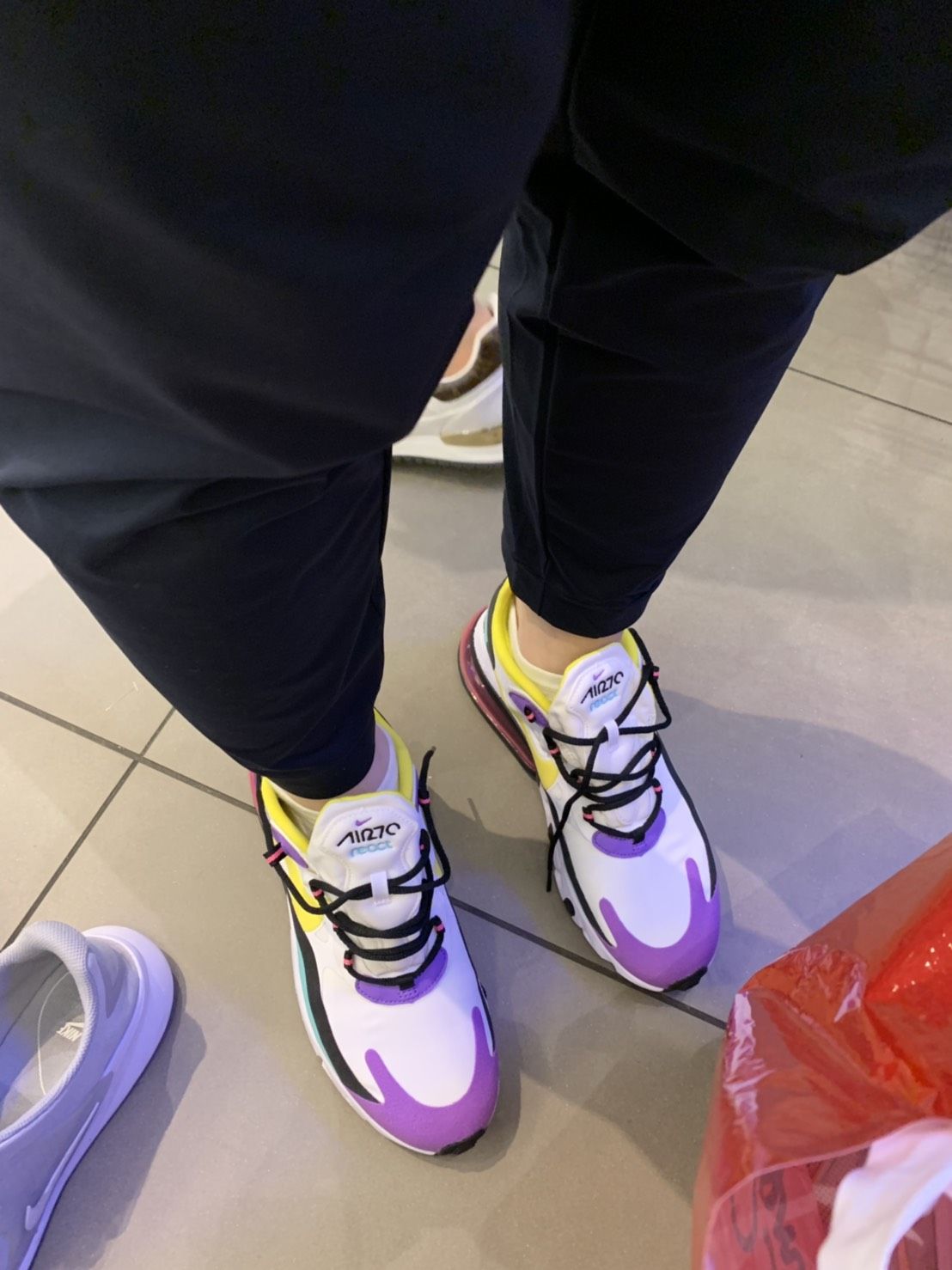 ลังเลระหว่างรุ่นVapormaxกับรุ่นAir React 270ที่เป็นไฮบริดออกเมื่อเดือนที่แล้ว แต่รุสึกว่ารุ่นVapormaxแข็งไปหน่อยแล้วไซส์ก็พอดีเกิน เลยซื้อตัวAir reactมา สีสันจัดจ้านถูกใจวัยรุ่นเหลือหลาย ทั้งยังลดราคาด้วย สงสัยต้องแบ่งรองเท้าฝากแม่กลับไทยไปส่วนนึงซะแล้ว5555 Nikeรุ่นสวิสที่เคยทะนุถนอมหนักหนาเมื่อหลายอาทิตย์ก่อนก็ตกกระป๋องกลายเป็นลูกเมียน้อยไปโดยปริยาย