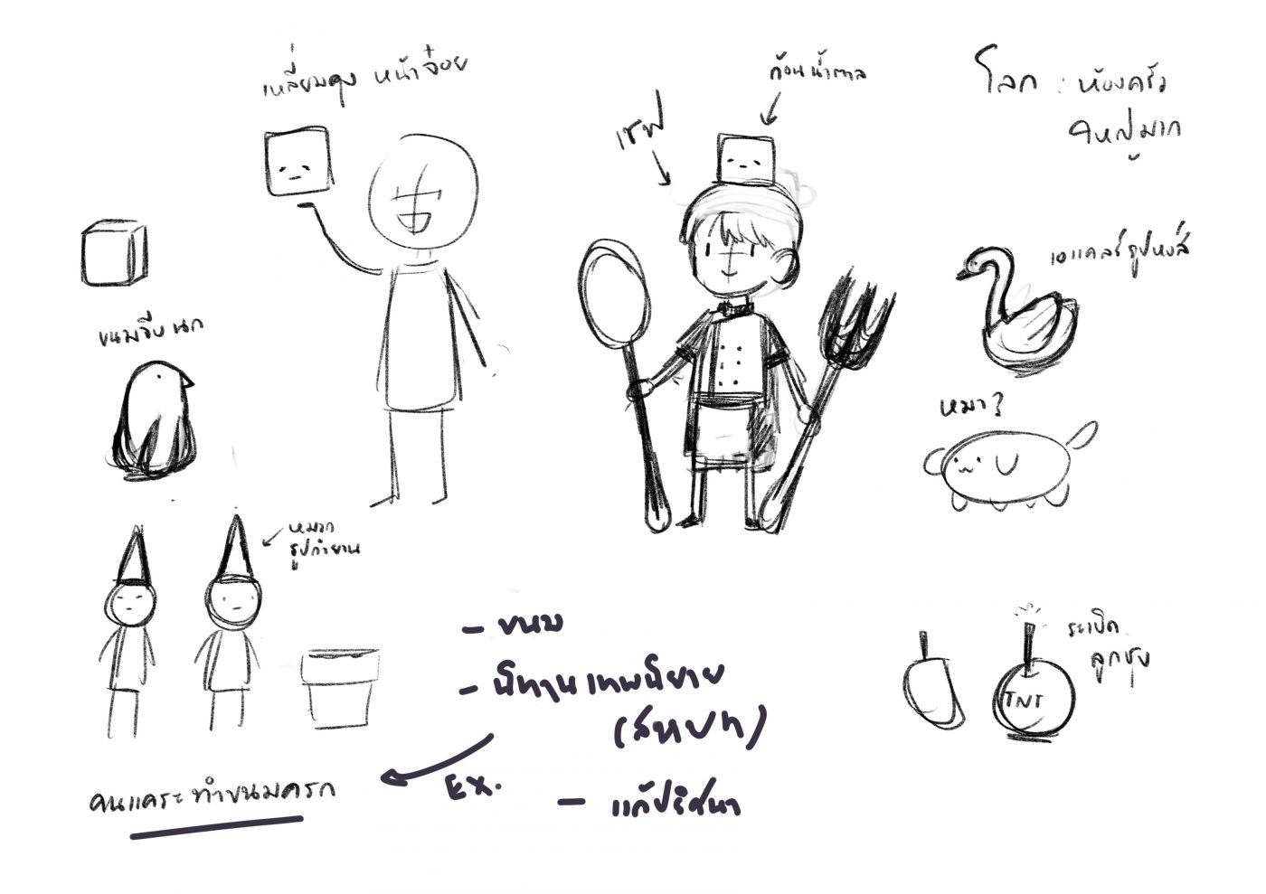 ภาพร่างตัวละครต่าง ๆ จากขนม