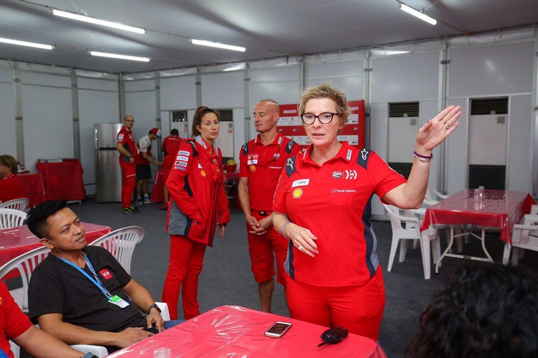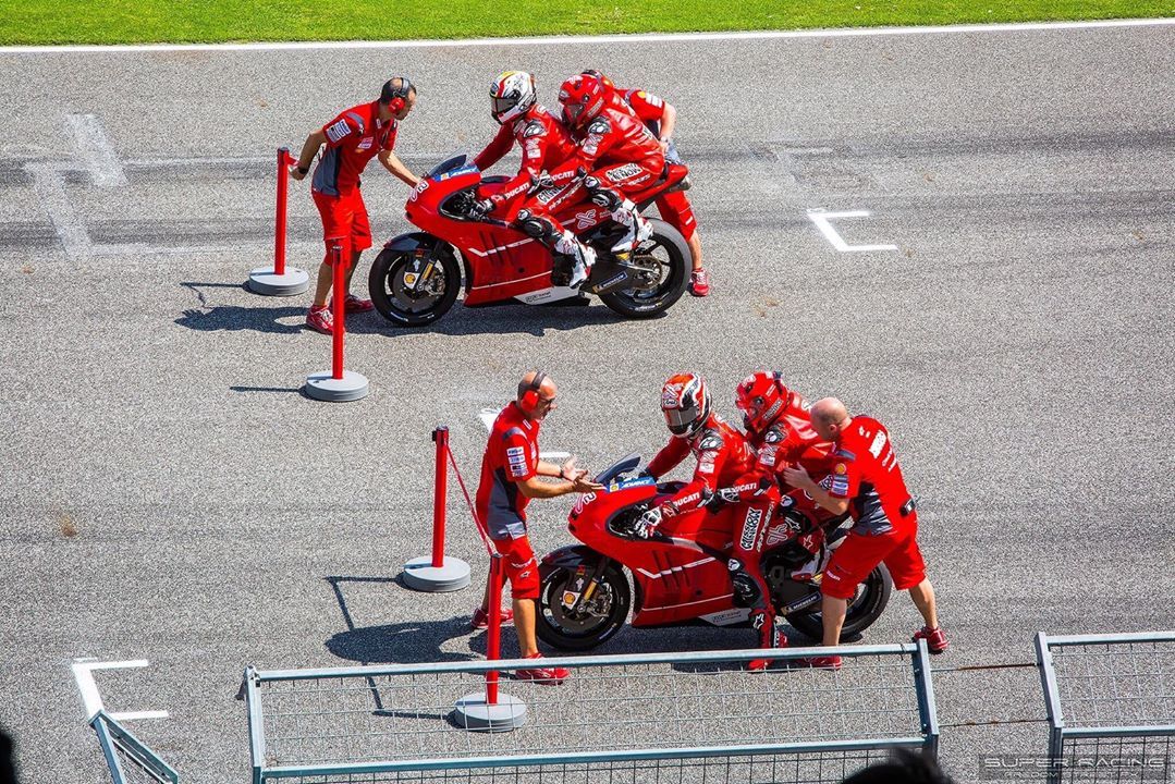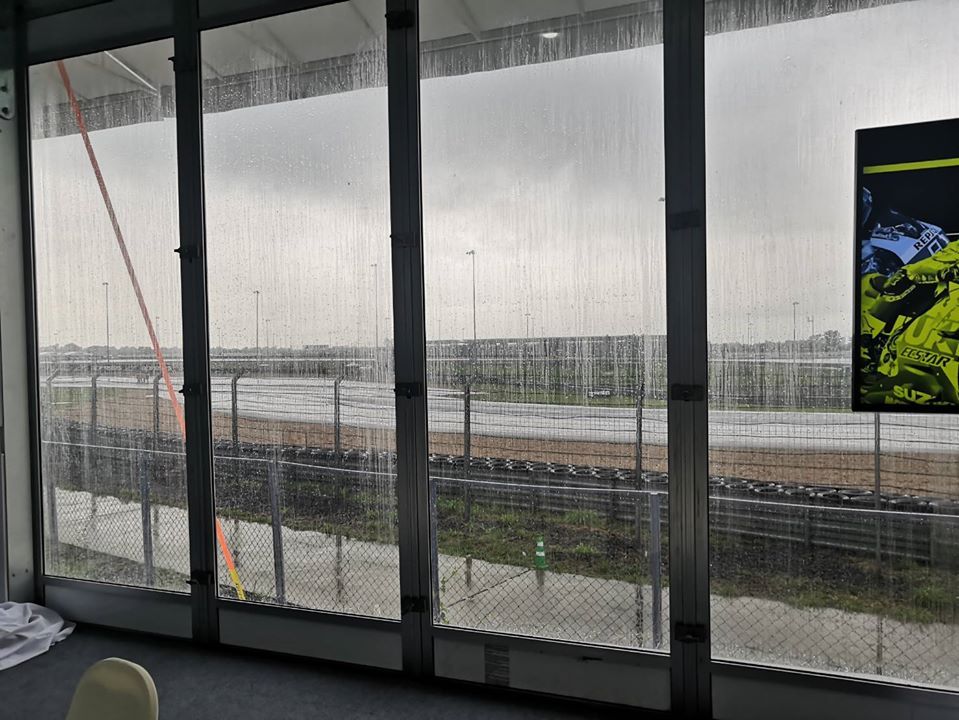 เทลงมาตลอดช่วงเช้า ในระหว่างนั้นในทีมก็บิ้วกันเองเล็กน้อยมีบางท่านสละสิทธิ์ด้วย ถึงเวลาที่พอไปได้ ก็ขึ้นรถตู้ไปที่สนาม เข้าในซุ้มของ DUCATI มีการ แจ้งขอแสดงความเสียใจ พร้อมอธิบายว่าทำไม จึงต้องยกเลิกกิจกรรมนี้ เพราะเนื่องจากเวลาเลื่อนมามากทำให้เวลาในการใช้สนามไม่ได้ ประกอบกับความเสี่ยงเกินไปจากพื้นสนามที่ลื่นจากฝนที่เทมารุนแรงในช่วงเช้า