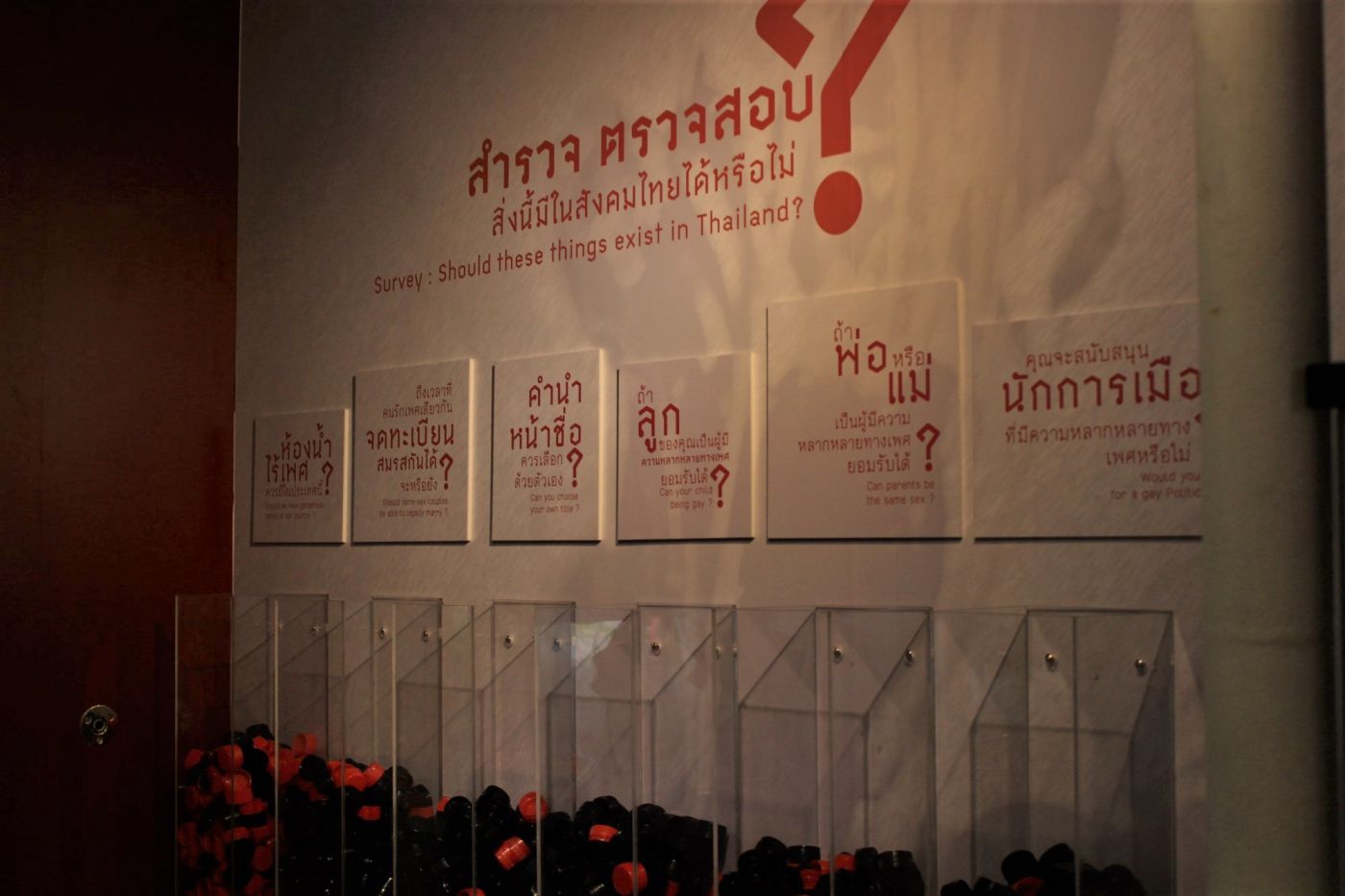 สุดท้าย นิทรรศการได้เปิดโอกาสให้เราลองแต่งตัวด้วยวิกผม ขนตา เครื่องสำอาง และส่องกระจกดูตัวเอง ก่อนที่จะจากเราไปด้วยการถามคำถามถึงประเด็นเรื่องเพศต่างๆในสังคม