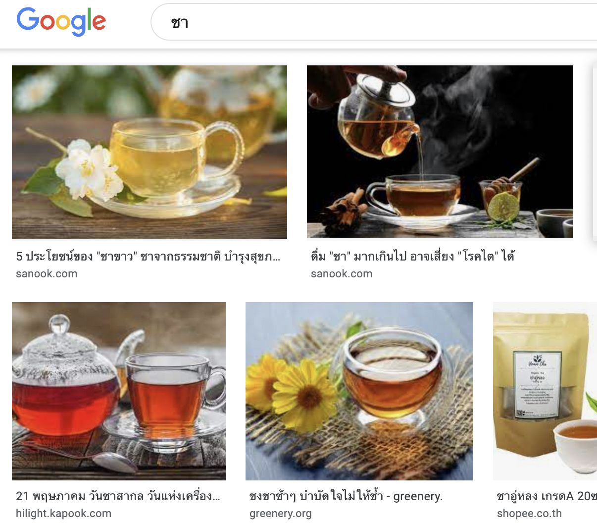 ทุกคนก็สามารถลองพิมพ์คำว่า 'ชา' เข้าไปในกูเกิ้ล แล้วลองเปิดแท็ปรูปขึ้นมา จะพบดังนี้ค่ะ