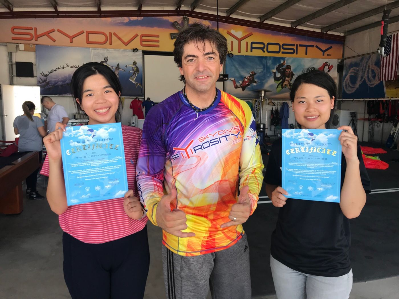 สำหรับ skydiving ครั้งแรก ทุกคนจะต้องโดดแบบพร้อมกับ instructure หรือครูฝึก