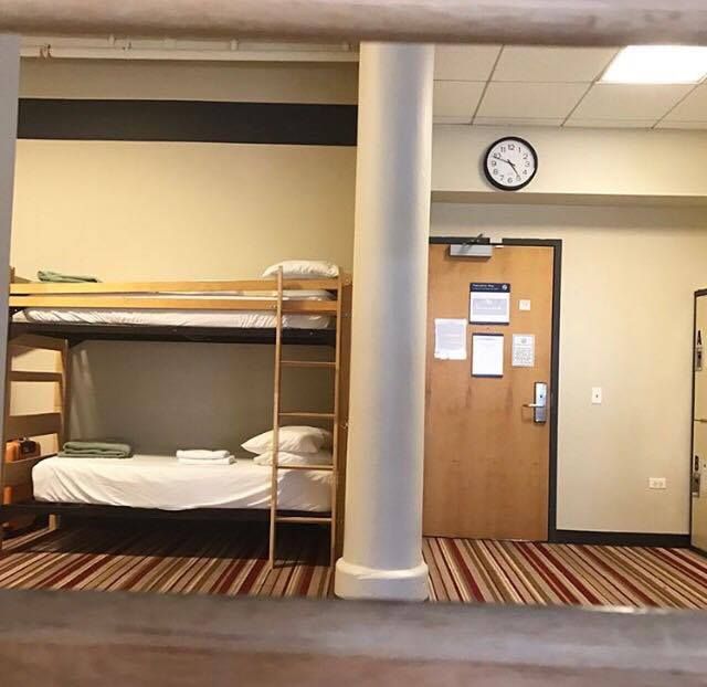 วิวจากเตียงนอนชั้นล่างของเราในโฮสเทล
