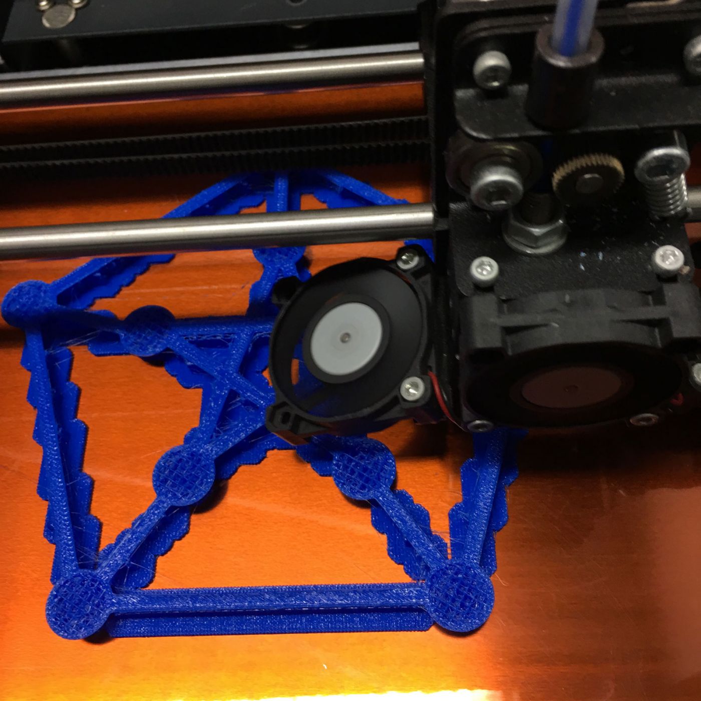 การที่รูปทรงแทบจะไม่ติดฐานเลย (ตรงก้าน หรือ edge ของกราฟ มีช่องว่างกับฐานเยอะมาก, ส่วนตรงโหนดก็เป็นทรงกลมอีก) ทำให้เสียเวลาพิมพ์ support* รวมถึง raft* ซึ่งกว่าจะเริ่มพิมพ์ชิ้นงานจริงๆ ก็ปาไปเกือบชั่วโมงแล้ว (ชิ้นนี้ใช้เวลาพิมพ์ทั้งหมดประมาณ 3-4 ชั่วโมง)