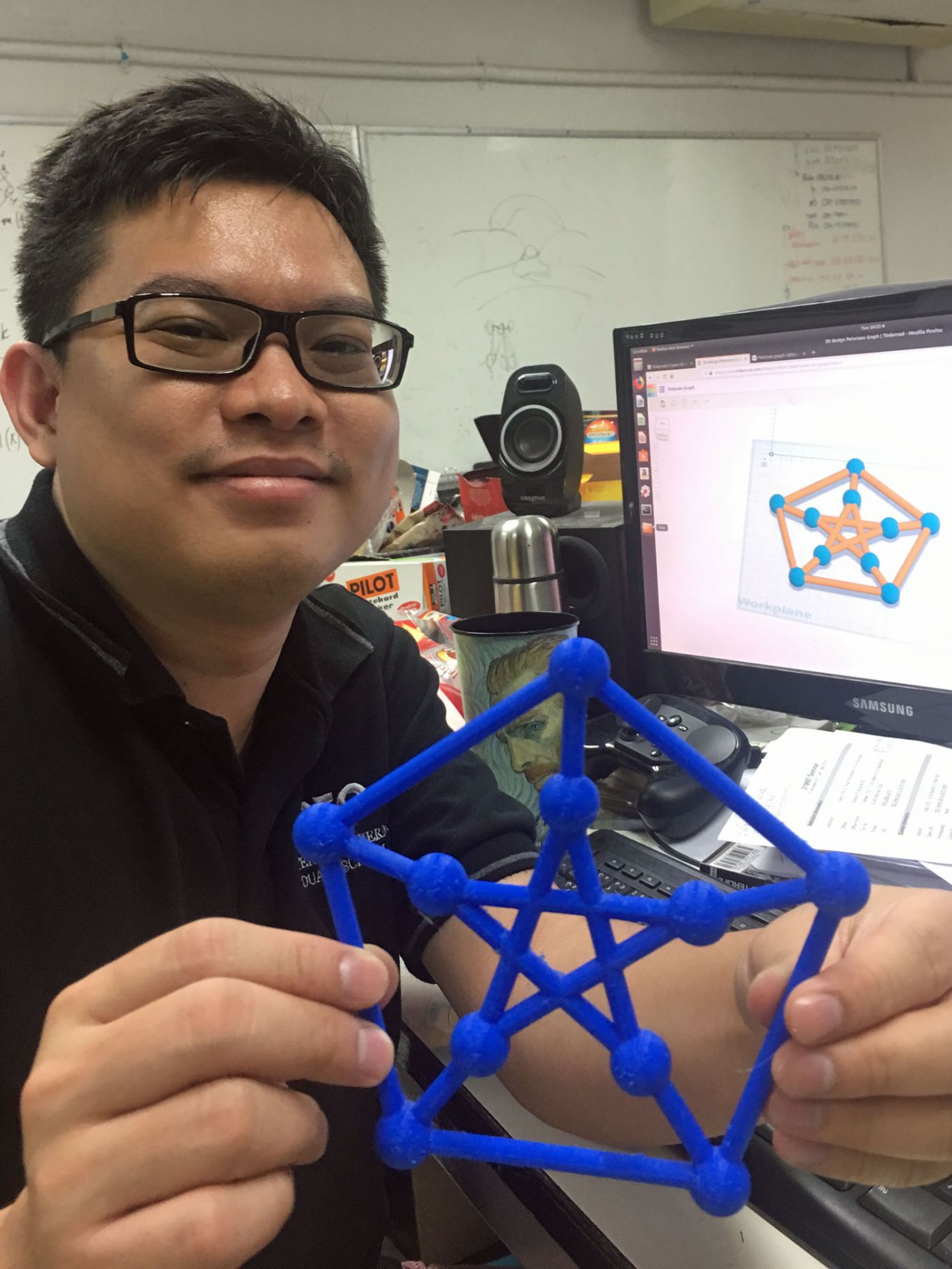 Tinkercad ซึ่งเป็นทูลออนไลน์ ก็ใช้ง่ายดี โมเดลกราฟที่สร้าง ใช้แค่ทรงกระบอก กับ ทรงกลมมาต่อๆ กัน ด้วยมุมที่เป็นเลขจากการคำนวณ และทุกอย่างอยู่ในระนาบเดียวกัน ทำให้วางสิ่งต่างๆ ได้ง่าย