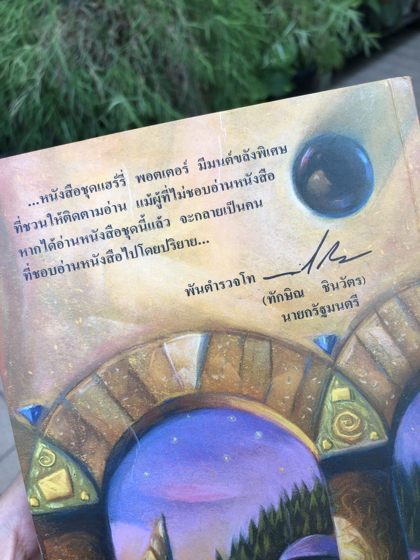 แฮร์รี่เล่ม 1 เราเป็นเวอร์ชั่นที่มีลายเซ็นทักษิณด้วยค่ะ 55555 บ่งบอกความแก่
