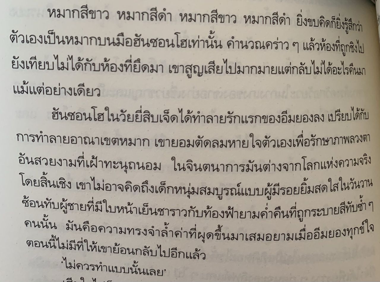 - อ่านจบแต่อารมณ์ไม่จบนะเราว่า แบบว่าอ่านจบก็เออ จบละหรอ ค้างนิด อารมณ์ตกค้างแต่ก็จบดีนะ