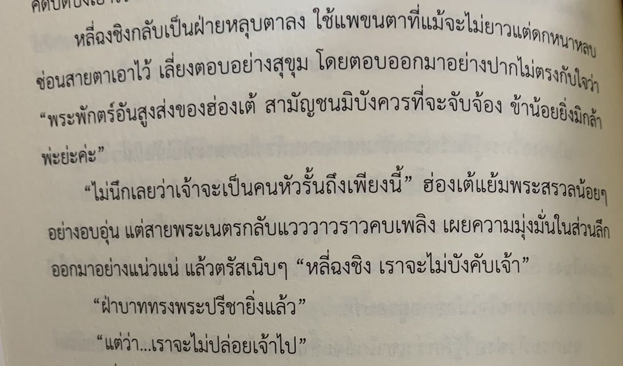 - NC ก็สงสารฉงชิงมากต้องมาเจอคนแบบนี้ไม่อ่อนโยนเลย อย่าไปคิดว่าเห็นฉงชิงซื่อๆแล้วจะยอมนะ หายครั้งก็งอนไม่คุยด้วยก็มี อย่าลืมฉากแรกที่เจอที่ไม่รักตัวกลัวตายปะทะฝีปากฮ่องเต้ก็ทำมาแล้ว เรื่องบนเตียงหลังจากคบกันก็คือแนบแน่น ฮ่องเต้หลงหนักมาก แรกๆแบบว่าอยากจะกกเป็นแม่ไก่