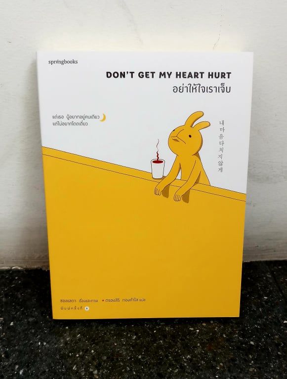 สายตาเราก็พลันสะดุดเข้ากับเจ้ากระต่ายน้อยสีเหลืองบนปกหนังสือเล่มนี้ ชื่อเรื่อง Don’t get my heart hurt อย่าให้ใจเราเจ็บ ช่างใกล้เคียงกับปณิธานปีนี้ของตัวเองเหลือเกิน