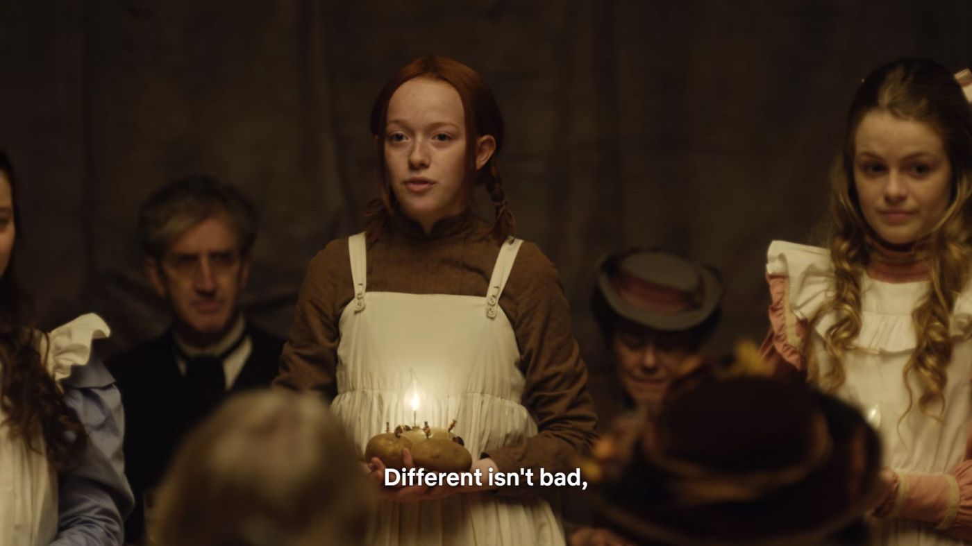 ซีรีย์ Anne with an e มาจากนวนิยายคลาสสิก Anne of green gables ในปี 1908 โดยนักเขียนชาวแคนาดา Lucy Maud Montgomery เล่าเกี่ยวกับการผจญภัยของ Anne Shirley เด็กหญิงกำพร้าวัย 11 ปี ที่ถูรับเลี้ยงโดย2 พี่น้องวัยกลางคนสองคนคือ แมทธิว และ มาริิลลา คัทเบิร์ต โดยตอนแรกทั้งคู่ต้องการเด็กผู้ชายมาช่วยงานที่ฟาร์ม แต่เกิดความผิดพลาดเด็กคนนั้นเลยเป็นแอนน์