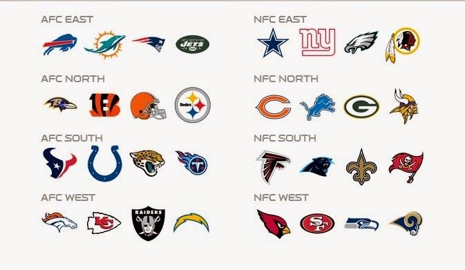 ประเทศอื่นรวมลีกกันก็เอาทีมที่เก่งๆมารวมกันเป็นลีกท็อปสู้กันยาวนานใครได้ที่1 ชนะ จบ แต่กับอเมริกากลับแบ่งเป็นภาคของประเทศ แบ่งภาคแล้ว ยังแบ่งโซนอีกตะวันตกตะวันออกเฉียงเหนือเฉียงใต้มั่วไปหมด รวมกันไปรวมกันมาย้ายกันไปย้ายกันมา (ขออนุญาติข้ามช็อตมาปัจจุบันเลยนะ) ก็แบ่งได้2 Conference คือ National Football Conference ย่อ NFC กับ