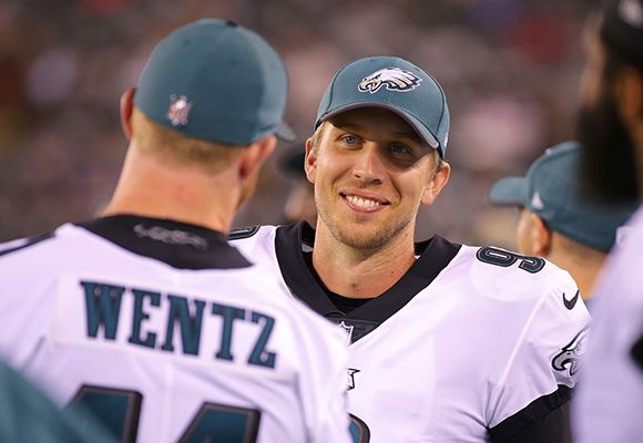 qb ตัวเก่งCarson Wentz เจ็บ ต้องพักทั้งฤดูกาล ความหวังของชาวPhiladelphia ก็ลดหยวบลงไป ทีมต้องใช้qbสำรอง นามว่า Nick Foles(รูปล่าง) ลงแทน