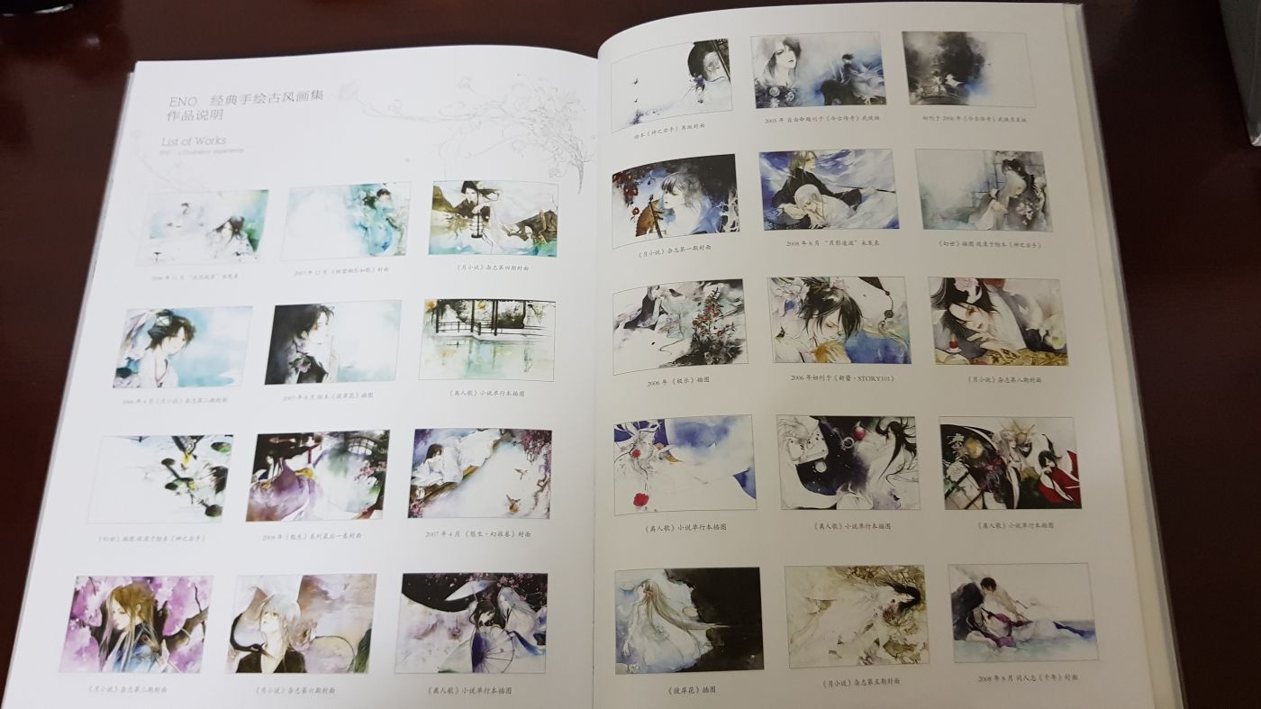 Artbook รวมผลงานของ Eno. ตีพิมพ์ปี 2009 เล่มนี้จะเป็นงานของ Eno.คนเดียวเลย เหมือนจะเป็นรวมเล่มเดี่ยวเล่มแรก(รึเปล่า?) ภาพข้างในเป็นแนวจีนโบราณผสมแฟนตาซีหน่อยๆ หนังสือเป็นภาษาจีนปกอ่อนขนาดA4 แถมpremiumโปสการ์ด 8 ใบ ลายภาพในเล่ม ใส่มาในซองกระดาษไขพิมพ์โลโก้ชื่อหนังสือ งามมากค่าาาาา
