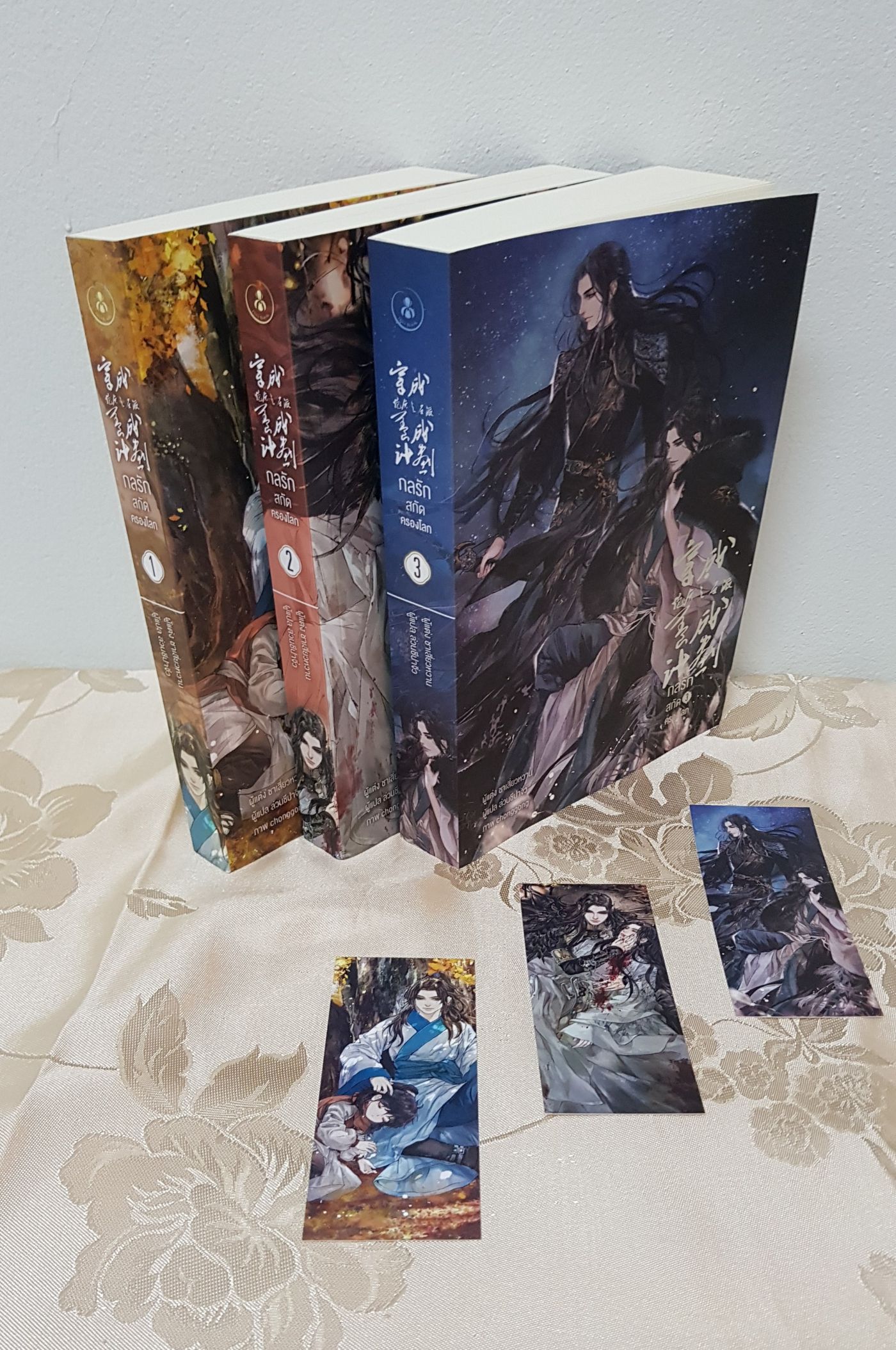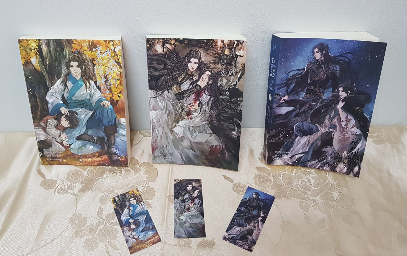 เรื่องนี้ตอนนี้ราคาอัพไปแรงมากโดยเฉพาะBoxset เห็นละตกใจ ดีใจที่สนพ.จะReprintต้นปีหน้า ไม่งั้นหนังสือคงอัพราคาไปโหดกว่านี้ เราโชคดีว่าซื้อเล่ม2-3ได้ตอนยังมีหลงอยู่หน้าร้านนายอินทร์แถวบ้าน แต่หาเล่ม1ไม่ได้เลยยังไม่ได้อ่านซะที สุดท้ายinboxไปถามpageของสนพ.เลยว่ายังเหลือมั๊ย 555 แบบว่าจนปัญญาอ่ะ...หาทุกที่แล้วแล้วจริงๆ ซึ่งโชคดีว่ายังเหลืออยู่เลยได้มาแบบราคาปก Adminของสนพ.Irisbookพูดคุยดีมากค่ะ แถมจัดการดูแลเรื่องรับคำสั่งซื้อ+ส่งของรวดเร็วสุดๆ ไม่กี่วันหนังสือก็ถึงบ้านแล้ว และขอชมคุณภาพหนังสือค่ะงานแปลสำนวนโอเคคำผิดน้อย อีกอย่างคือรูปเล่มสวยมากๆๆๆๆๆ ปกงามสุดๆ อ๊ากกก กรีดร้อง > < สนพ.นี้เราพรีฯอีกเรื่องของเค้ามาด้วย คือเรื่องระบบพลีชีพดั่งวีรชน เพิ่งออกเล่ม 1-2 เดือนที่แล้ว แกะห่อมานี่ยิ้มแก้มปริ ไม่ผิดหวังเลยหนังสือและพรีเมี่ยมสวยมากๆเหมือนกันค่า