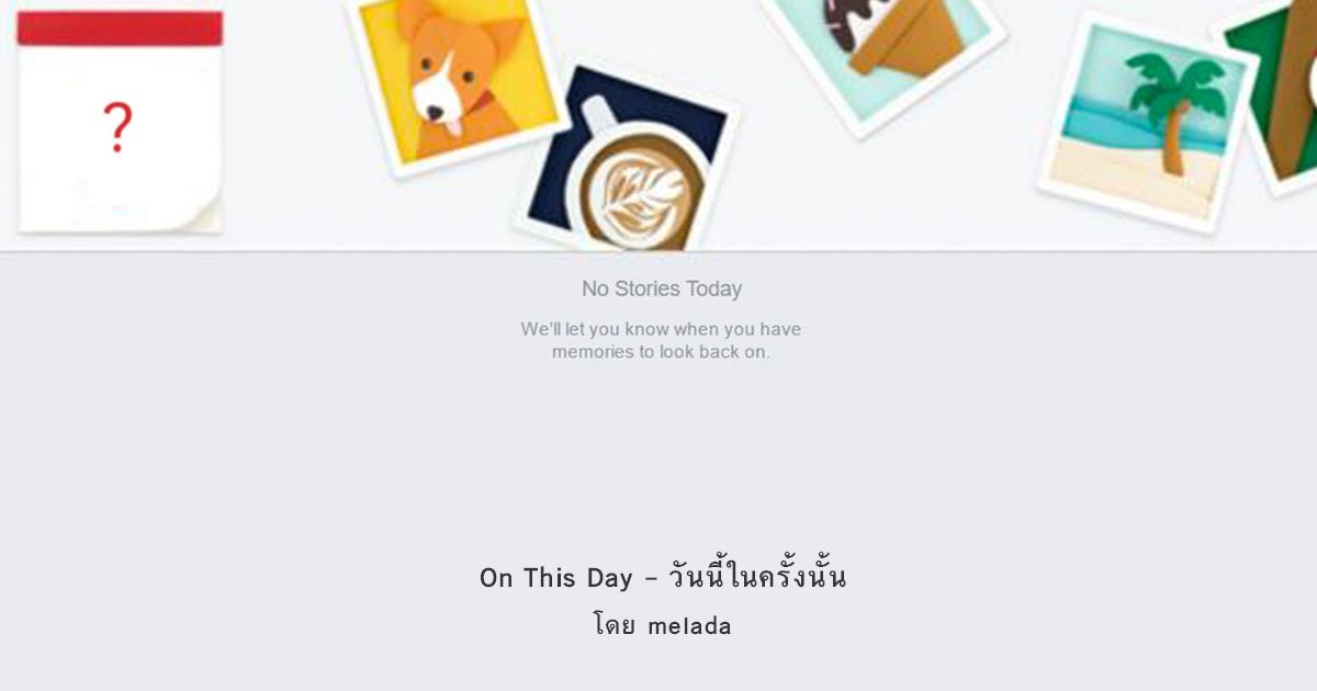 On This Day - วันนี้ในครั้งนั้น โดย meladaหลายๆ คนที่มีเฟซบุ๊กคงจะคุ้นเคยกับเจ้าฟีเจอร์นี้ดีมาก คือฟีเจอร์ On This Day ที่บอกว่าวันนี้เมื่อปีก่อนๆ เราทำอะไรไปบ้าง อย่างมินิมอร์เวลาที่มันเตือนขึ้นมาบางทีก็ซาบซึ้ง เกิดอาการ nostalgic กับโพสต์เก่าๆ บางทีก็อายม้วนกับความเด๋อของตัวเองเมื่อ 5 ปีก่อน *กดซ่อนโพสต์ให้เห็นแค่ตัวเอง* คุณ melada ได้มาเขียนความรู้สึกของตัวเองกับเจ้าฟีเจอร์นี้ ลองไปอ่านกัน