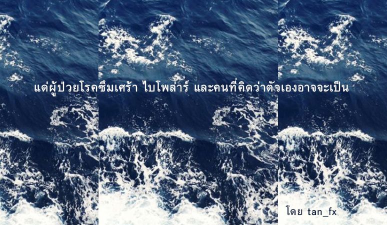แด่ผู้ป่วยโรคซึมเศร้า ไบโพล่าร์ และคนที่คิดว่าตัวเองอาจจะเป็น โดย tan_fx>>อ่านโรคซึมเศร้า ไบโพลาร์ และอีกหลายๆ โรคในหน่วยนี้ บางคนอาจจะมองว่ามันเป็นโรคใหม่ๆ ที่เพิ่งเกิดขึ้น เปล่าเลย มันอยู่กับมนุษย์เรามานานแล้วแหละ เพียงแต่คนที่เป็นไม่กล้าที่จะพูดออกมา ได้แต่เก็บมันเอาไว้เพียงลำพัง เพราะในยุคหนึ่งสมัยหนึ่ง สังคมมองว่าคนที่มี suicide thought นั้นเป็นคนที่จิตใจอ่อนแอ แต่จริงๆ ไม่ใช่นะ โรคเหล่านี้เกิดจากความผิดปกติของร่างกายไม่ต่างจากโรคอื่นๆ หรอก  เพื่อนๆ ที่เป็นโรคซึมเศร้า ไบโพลาร์ และอาการอื่นๆ หลายคนเริ่มเข้าใจตัวเองมากขึ้น ได้ออกมาเล่าเรื่องราวเกี่ยวกับตัวเองรวมถึงแนวการรักษา เพื่อคนอื่นๆ ที่เป็นจะได้กล้าเข้าไปคุยกับแพทย์มากขึ้น เช่นคุณ tan_fx และคุณ amsorn ที่เขียนโพสต์เอาไว้ใน makers มีประโยชน์มากจริงๆ ขอบคุณแทนทุกๆ คนที่ได้เข้าไปอ่านด้วย เรามาเยียวยาตัวเองไปด้วยกันนะ =D