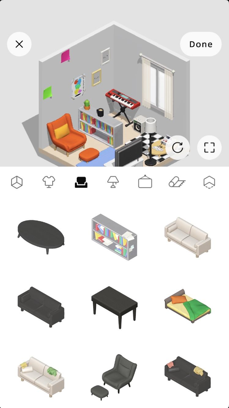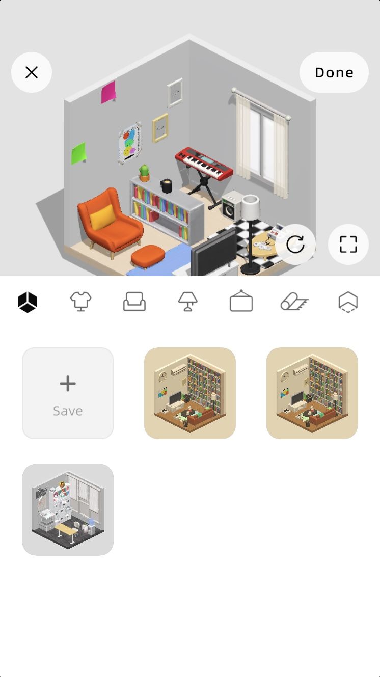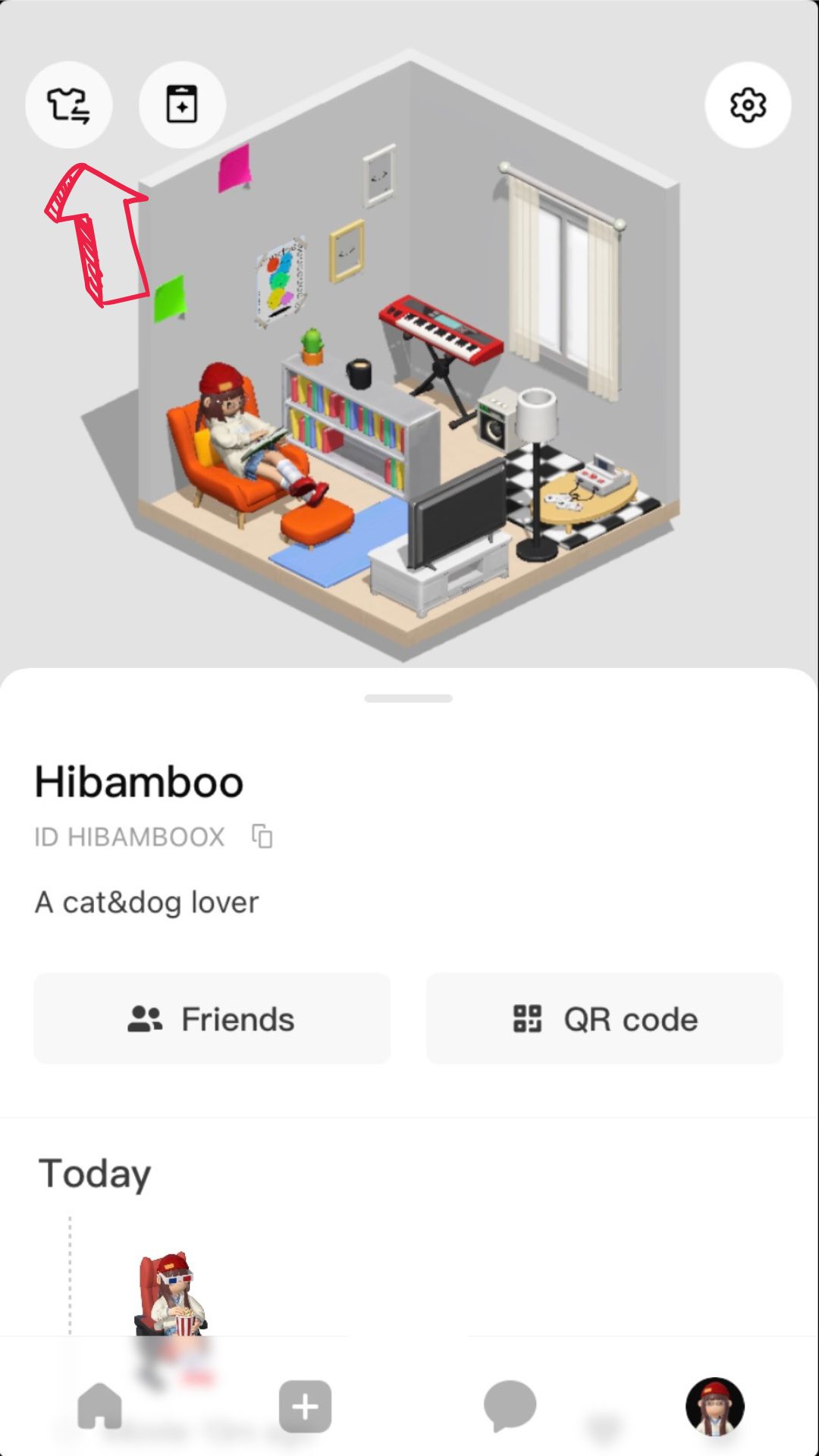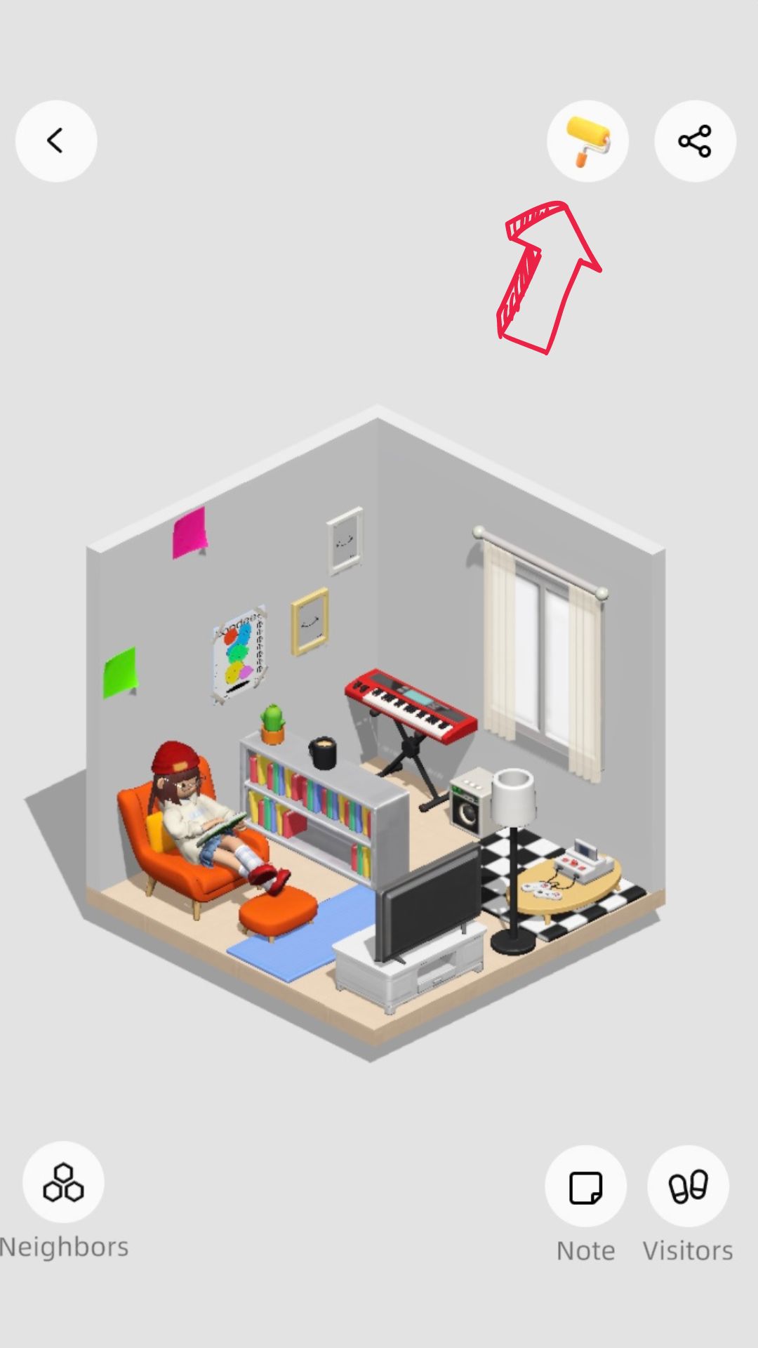 ไปหน้าแต่งห้อง กดที่ปุ่มโปรไฟล์ของเราที่มุมขวาล่าง มันจะลิ้งค์ไปที่หน้าแอคเค้าท์ของเรา > กดตรงห้อง > จากนั้นกดปุ่มแปรงทาสี > แต่งเสร็จแล้วกด Done