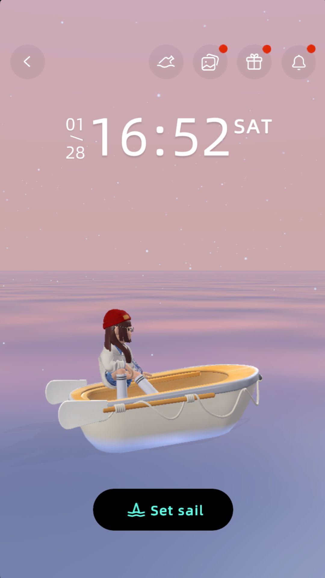 - ล่องเรือ ฟีเจอร์น่าสนใจอีกอย่างสำหรับสายชิลอยากตกตะกอนความคิด เราสามารถให้อวาตาร์ของเราไปนั่งล่องเรือเล่นๆ ได้ แถมยังมีโน้ตให้เราพิมพ์ข้อความใส่ขวดแล้วทิ้งไปในทะเลเผื่อมีคนเก็บได้ แล้วอาจจะได้ข้อความกลับมา เหมือนเป็นการแลกเปลี่ยนข้อความทางไกล(ซึ่งก็ไกลจริงๆ)