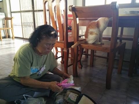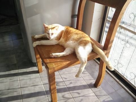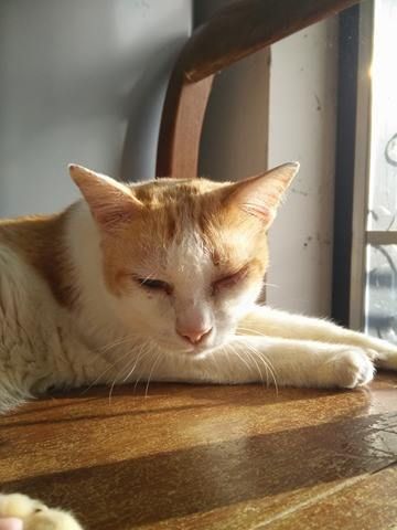 วันนี้น้ำตาลแก่มากๆแล้ว ตัวอ้วน กลายเป็นผู้เฒ่าแมวไปซะแล้ว ตัวอ้วนกลมเสียงร้องไม่ใสเหมือนเดิมนอนอืดอยู่กับที่ พอมันเห็นเรามันก็ร้องด้วยเสียงแหบ ตาด้านซ้ายของมันบวมและมีน้ำตาตลอดเวลายายบอกฉันว่า มันแพ้ปลาทู ตาอีกข้างเริ่มขุ่นเป็นสีเทา ทั้งที่ สีตาของน้ำตาลเป็นสีเหลืองสวยเข้ากับขนมันมากๆ เรานั่งพื้นแล้วค่อยๆเอามือลูบหัวมัน น้ำตาลก้มหัวให้ลูบ แต่ก็ยังคงกางเล็บจิกเก้าอี้อยู่อย่างนั้น เราเลยพูดกับมันว่า