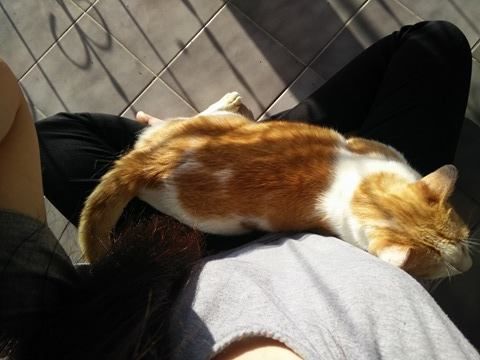 น้ำตาลดมมือเราแล้วนิ่งสักพัก มันก็ร้องเมี้ยวออกมาด้วยเสียงแหบๆ ราวกับว่าจำเราได้ มันพยายามขยับตัวเองเพื่อลงจากเก้าอี้ เพื่อลงมาอ้อนเรา ไม่ไหวหรอก แกอ้วนเกินไป เราเลยอุ้มมันลงมามันก็ทำแบบเดิมเหมือนตอนเด็กๆที่ชอบเดินวนๆแล้วนอนซบตัก เป็นการบอกบอกว่า มาหาเราหรอคิดถึงจังเลย และซักพักน้ำตาลก็ปืนขึ้นมานอนตัก เหมือนเรากำลังคุยกันว่า ทำไมเธอโตขึ้นขนาดนี้นะ เด็กที่เล่นกับฉันในวันนั้น