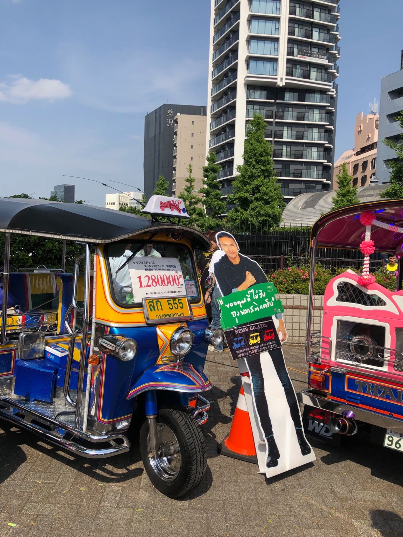 มีบูธขายพวกอาหารแห้ง ซอส เครื่องปรุงราคาไม่แพงในงาน เราเหมามาม่ามาสี่ซอง ทีีไทยขายซองละ 6 บาท ที่นี่เขาเอามาขายประมาณ 10 กว่าบาท ก็ถือว่าราคาสมเหตุสมผลอยู่ น้ำส้มมาลีก็ราคาประมาณสองเท่าของไทย เราเดินที่งานไม่นานมาก เพราะใจจริงๆคือแค่อยากมากินแล้วก็มาดูบรรยากาศนิดหน่อยแค่นั้น เดินออกมาตรงทางออกอีกฝั่งก็เห็นรถตุ๊กตุ๊กจอดโชว์ ขายในราคาประมาณสามแสนกลางๆ แล้วก็มีสแตนดี้พี่ตูนที่ชอบตั้งในเซเว่นพิงอยู่ เค้าแบกของพวกนี้กันมาที่ญี่ปุ่นยังไง สงสัยมาก 555555