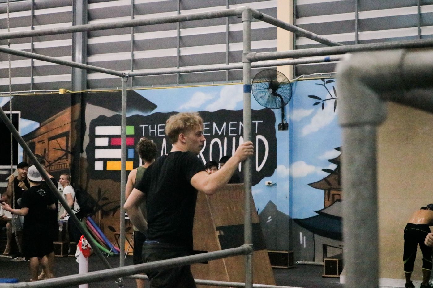 เสน่ห์อย่างหนึ่งของงานแจมคือ ต่อให้เจอคนต่างชาติ เราก็ใช้ภาษากายหรือท่าทางนี่แหละคุยกันได้ มีชาวต่างชาติคนหนึ่งเขาเล่นกระโดดลอดไปมาตามโครงเหล็ก ซึ่งเขาเห็นผมมองอยู่ พี่แกก็กวักมือทำนอง “ลองดูไหม” ผมก็จัดตามครับ ซึ่งบางท่าก็เกินฝีมืออยู่บ้างแต่ทักษะที่สั่งสมมาก็พอจะช่วยถูไถไปได้อยู่ แต่บางท่าก็ต้องยอมครับ เราฝึกมาต่างกันจริงๆ
