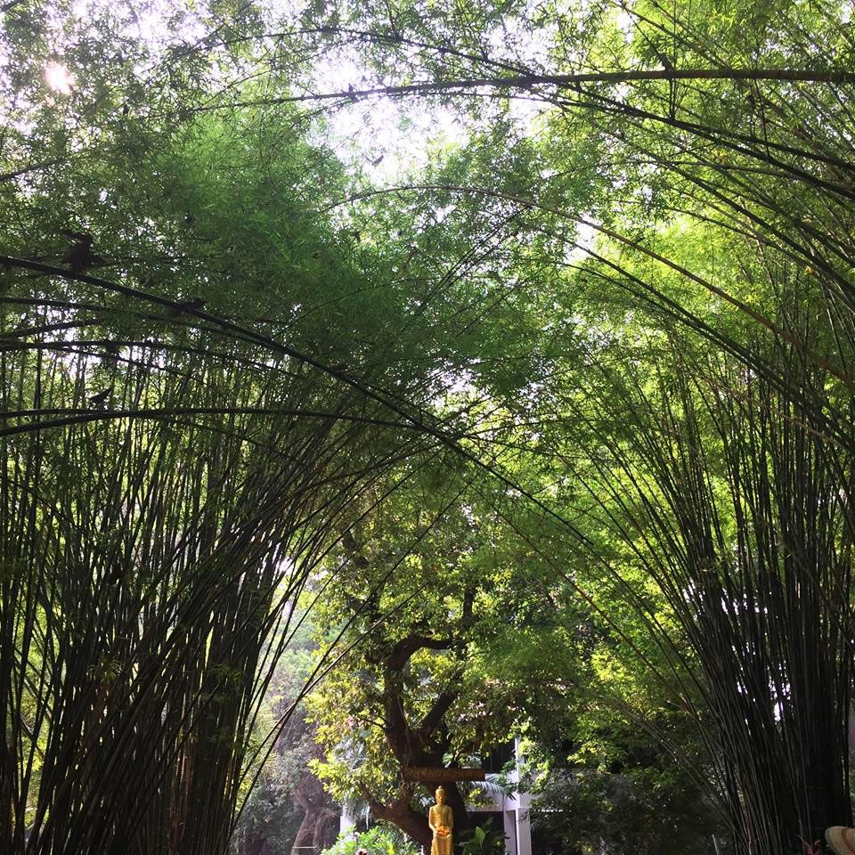 ไปๆๆๆ ไปเที่ยวซุ้มป่าไผ่กัน วันนี้จะพาเพื่อนๆไปซุ้มป่าไผ่ที่วัดจุฬาภรณ์วนาราม ตั้งอยู่ที่ ตำบลบ้านพริก อำเภอบ้านนา จังหวัดนครนายก อยู่ใกล้กรุงเทพนิดเดียวเองค่า ซุ้มป่าไผ่ของที่นี่มีลักษณะโค้งเข้าหากันโดยธรรมชาติ ใช่ค่ะ เพื่อนๆอ่านไม่ผิดแน่นอน ว่าโดยธรรมชาติจริงๆค่ะไม่มีการดัดหรือการตกแต่งใดๆทั้งสิ้น ความที่เป็นธรรมชาตินี้จึงทำให้ซุ้มป่าไผ่มีความสวยงามในตัวของมันเอง เดินเข้าไปก็จะให้ความรู้สึกว่านี่ฉันอยู่เมืองไทยเหรอเนี่ยมันให้ความรู้สึกเหมือนไปเที่ยวป่าไผ่ที่อาราชิยาม่าเลย555 เราแนะนำให้เพื่อนๆไปช่วงเช้านะคะ เพราะตอนที่แสงอาทิตย์ตกลงมากระทบกับต้นไผ่แล้วมันจะสวยมากๆ อากาศตอนเช้าก็ไม่ร้อนด้วยน้า เหมาะแก่การไปเที่ยวที่สุด แถมการเดินทางก็สะดวกอีกด้วย ยังไงก็อย่าลืมแวะไปเช็คอิน ถ่ายรูป ชิคๆ กันได้ ที่นี่ก็เป็นอีกตัวเลือกหนึ่งสำหรับนักท่องเที่ยวหรือใครที่ยังคิดไม่ออกว่าวันหยุดสงกรานต์นี้จะไปไหนดีก็ลองมาที่นี่ 'ซุ้มป่าไผ่' กันได้นะทุกคน สถานที่เล็กๆแบบนี้ก็สามารถสร้างความสุขให้กับทุกคนได้น้า