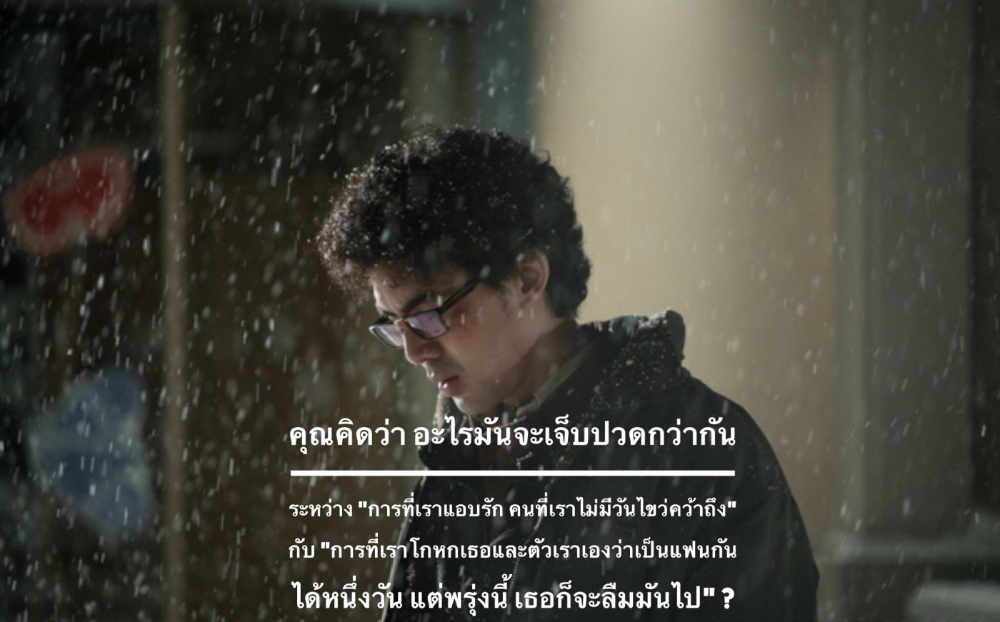 คุณคิดว่า อะไรมันจะเจ็บปวดกว่ากัน ระหว่าง "การที่เราแอบรัก คนที่เราไม่มีวันไขว่คว้าถึง" กับ "การที่เราโกหกเธอและตัวเราเองว่าเป็นแฟนกัน ได้หนึ่งวัน แต่พรุ่งนี้ เธอก็จะลืมมันไป" ?