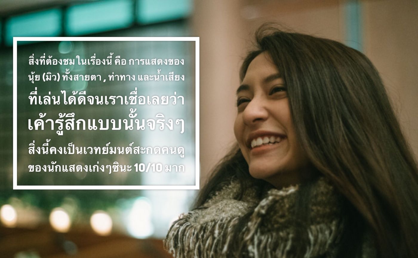 สิ่งที่ต้องชมในเรื่องนี้ คือ การแสดงของ นุ้ย (มิว) ทั้งสายตา , ท่าทาง และน้ำเสียง ที่เล่นได้ดีจนเราเชื่อเลยว่า เค้ารู้สึกแบบนั้นจริงๆ สิ่งนี้คงเป็นเวทย์มนต์สะกดคนดู ของนักแสดงเก่งๆซินะ 10/10 มาก