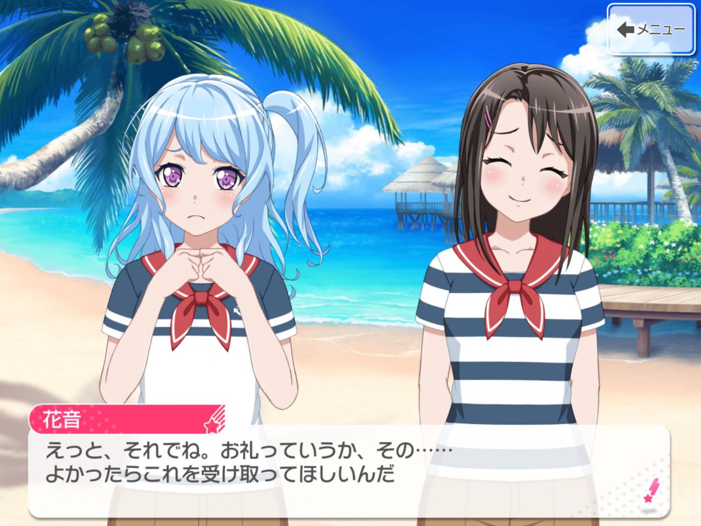 คาน่อน : อ๊ะ คือว่า ไม่ใช่แบบนั้น ไม่ใช่ของตอบแทนที่รอหรอก ก็มิซากิจังคอยช่วยเหลือเสมอเลยอยากขอบคุณเรื่องนั้นน่ะ...