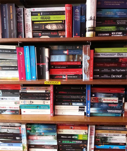 ตัวอย่างของชั้นหนังสือภาษาเยอรมัน ชั้นแต่ละชั้นหนังสืออัดแน่นมาก